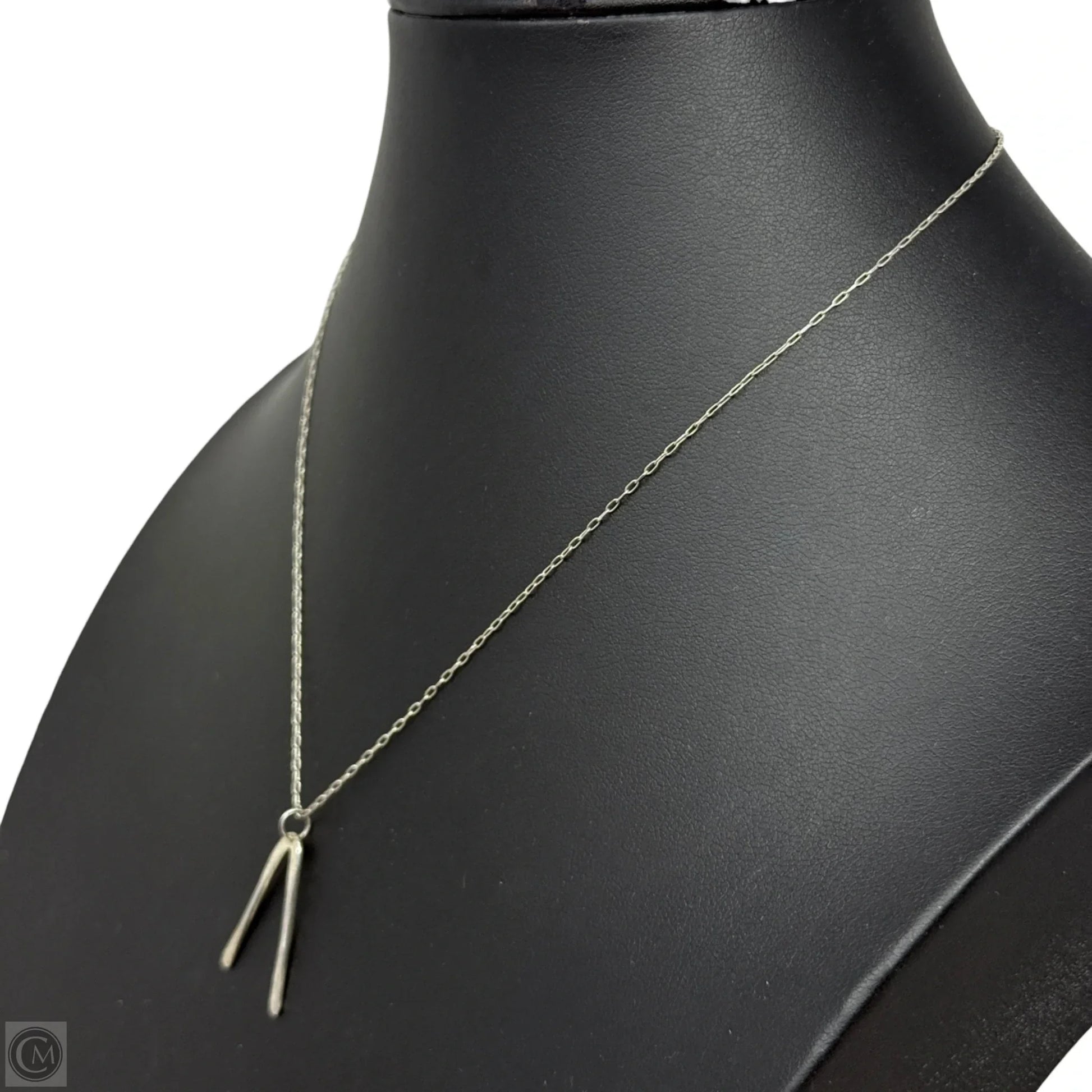 Silver Tone Wishbone Pendant On Sterling Silver Chain