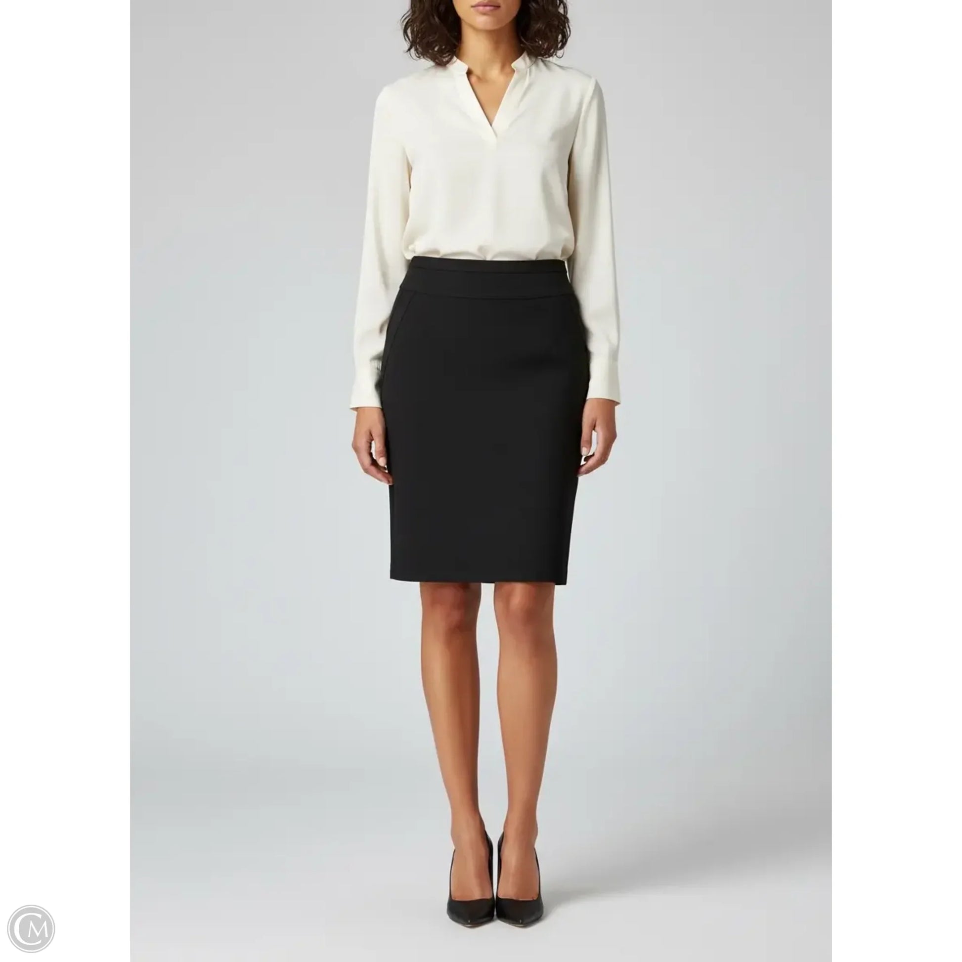 Effortlessly elegant, the Premise black midi skirt in size S exudes sophistication with its timeless design and impeccable fit.