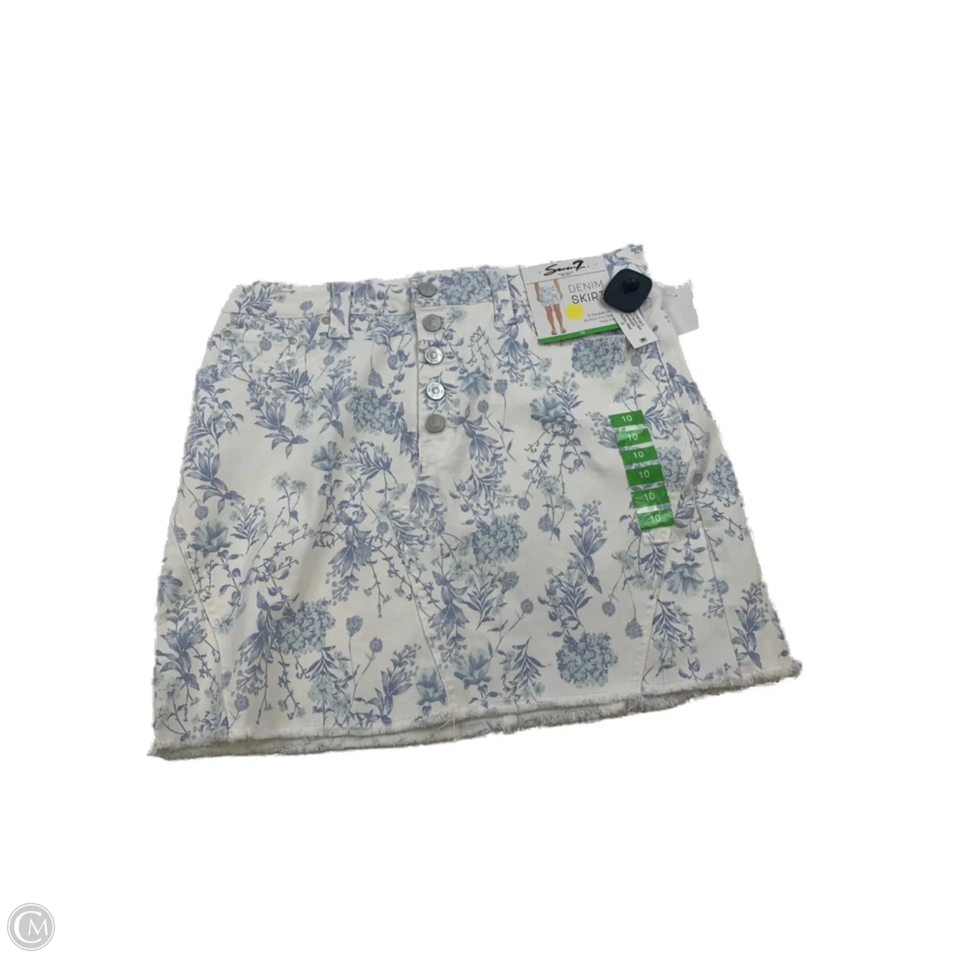 Skirt Mini & Short By Seven 7 In Blue & White, Size: 10