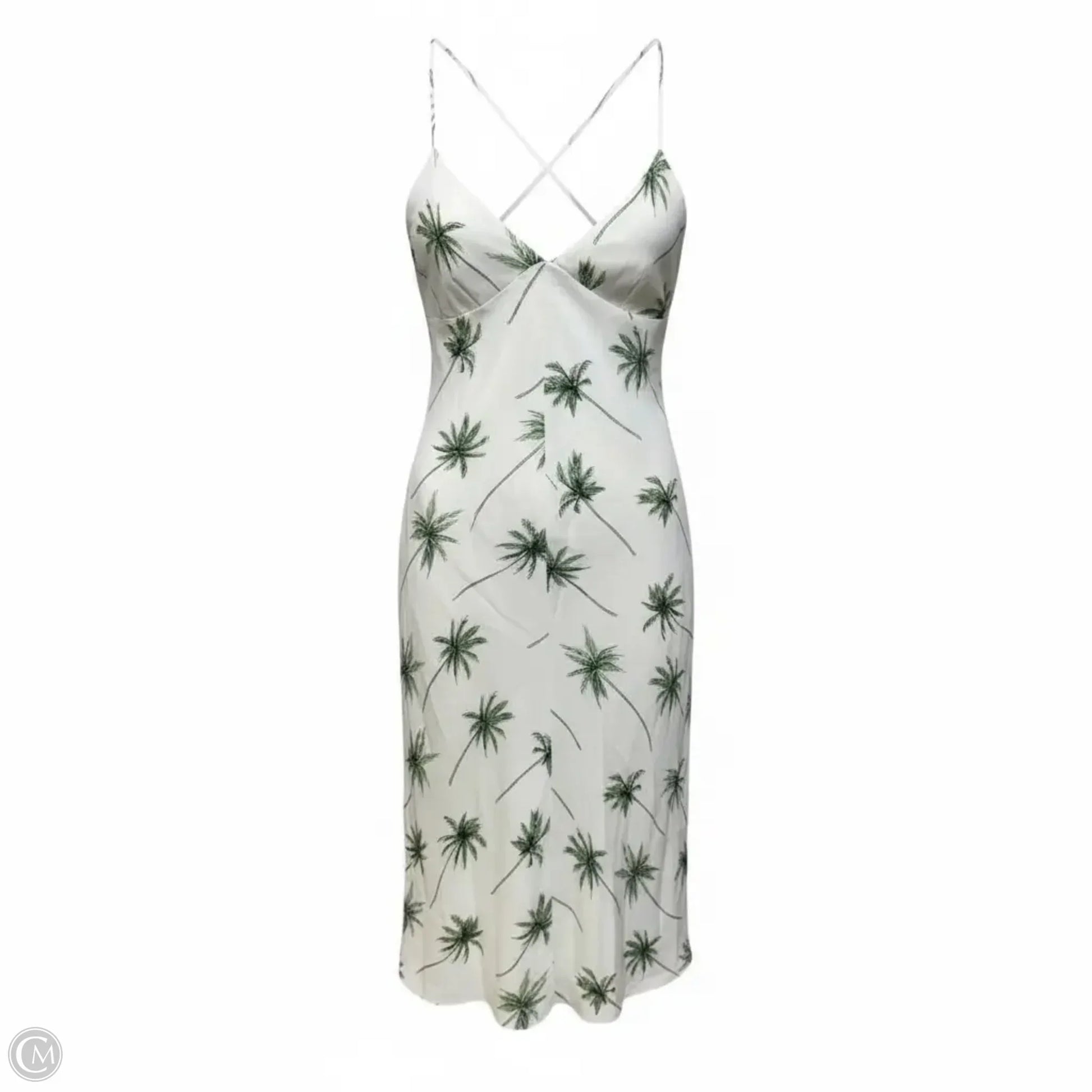 Spaghetti Strap Crossback Slip Dress Designer By Milly In Palm Tree Print, Size: 6