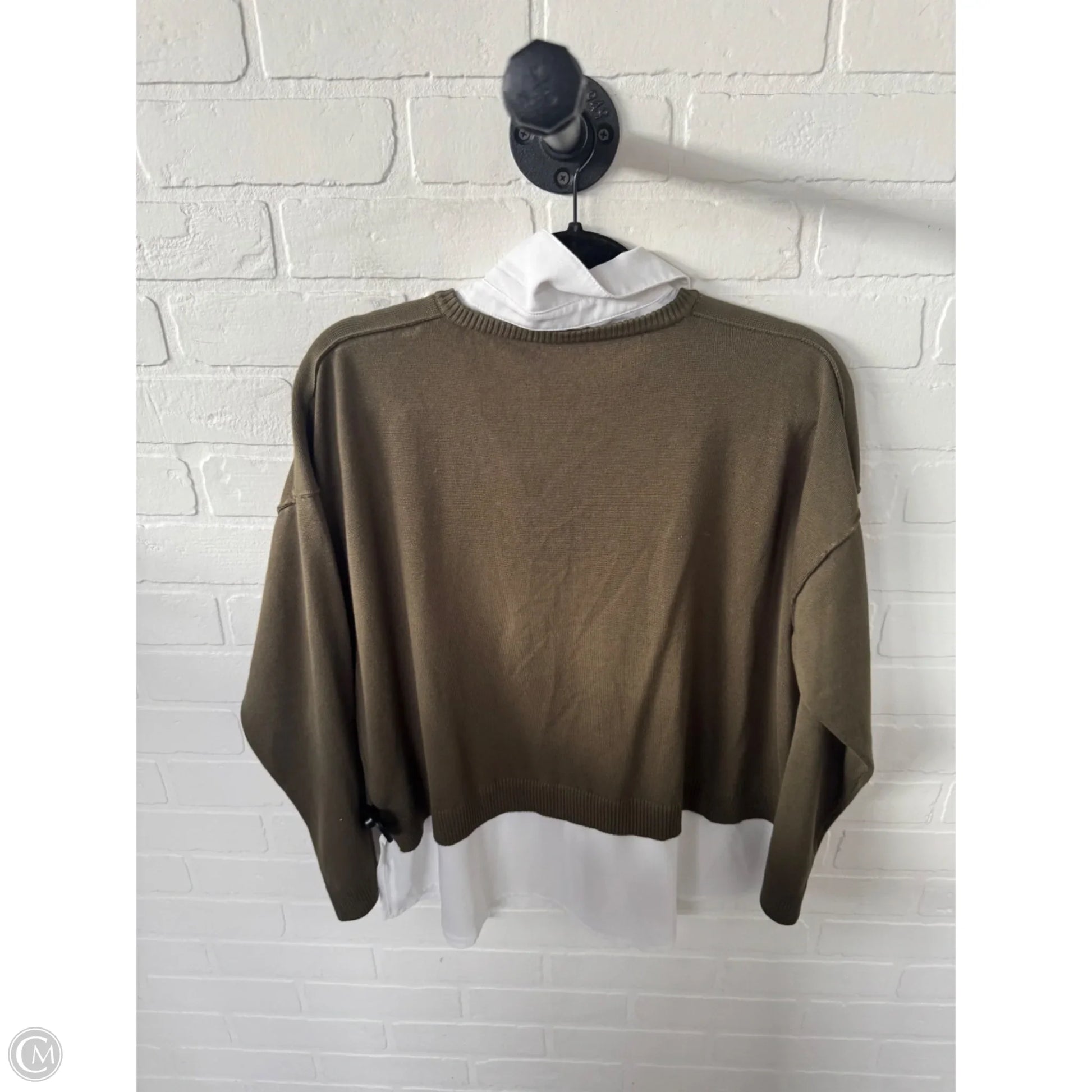 Sweater By Adrianna Papell In Green & White, Size: L