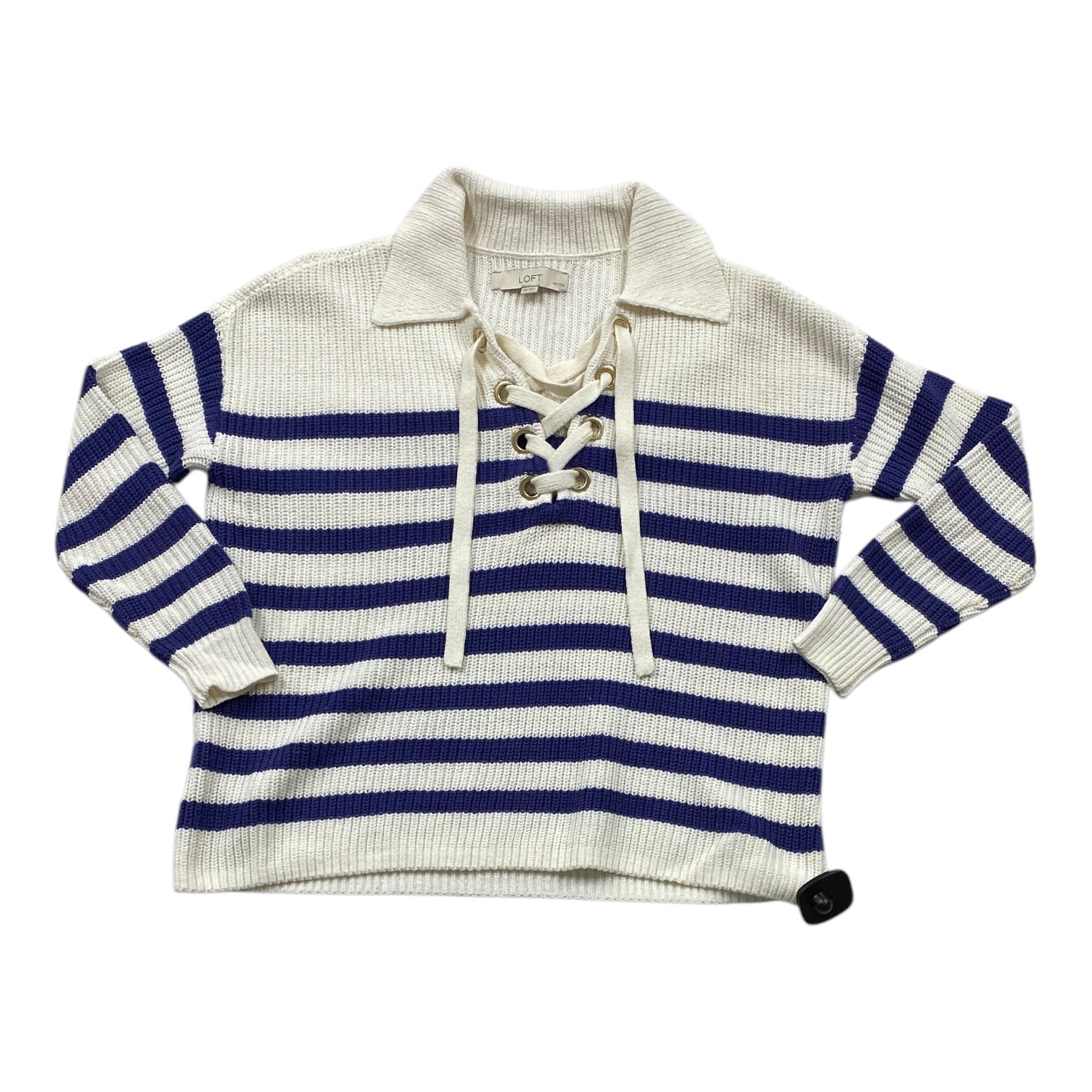 Sweater By Loft In Blue & Cream, Size: Xsp