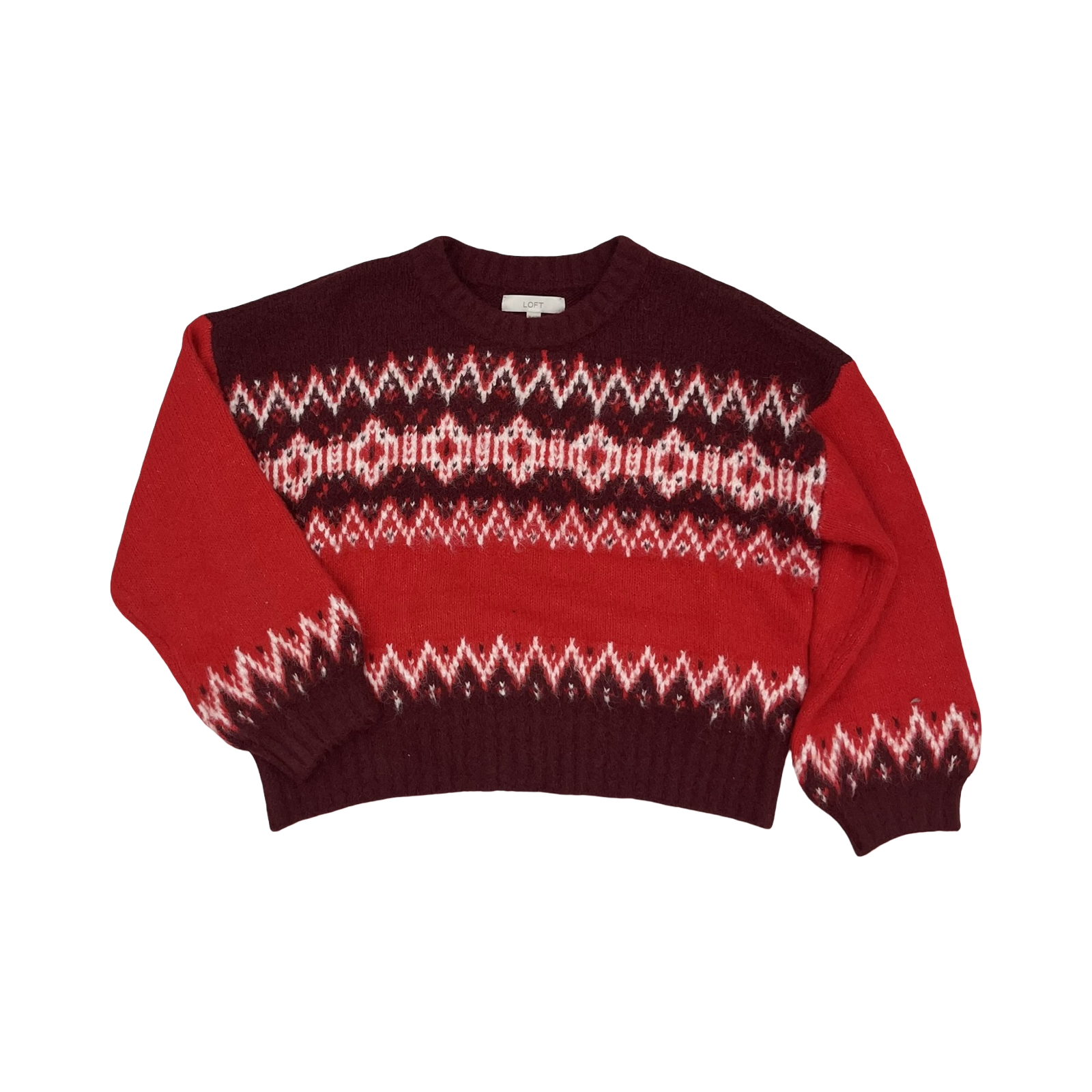 Cozy up in this vibrant red and white Loft sweater, size XL. Embrace winter chic!