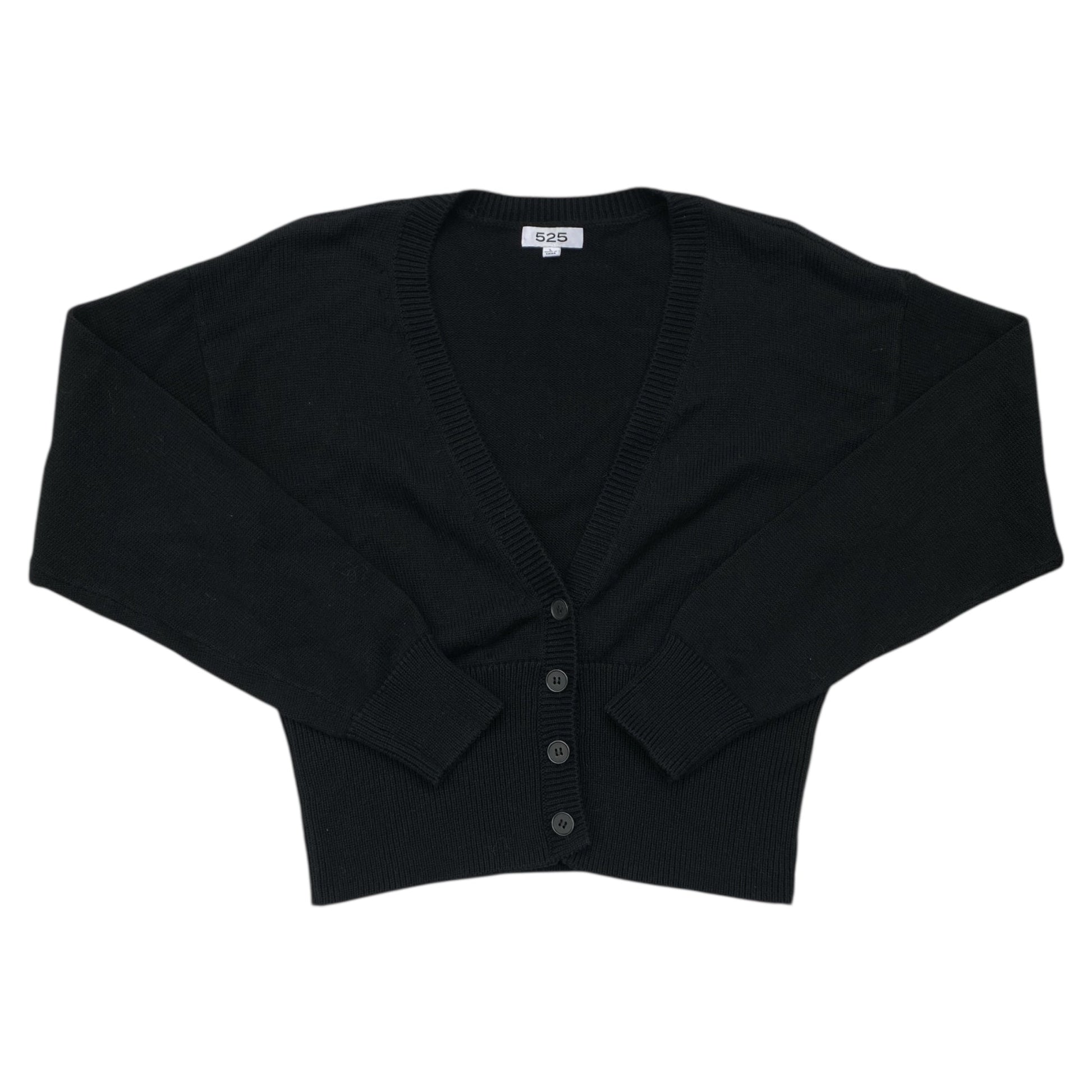 Luxurious Black 525 Sweater Cardigan in size L offers timeless style and cozy warmth.
