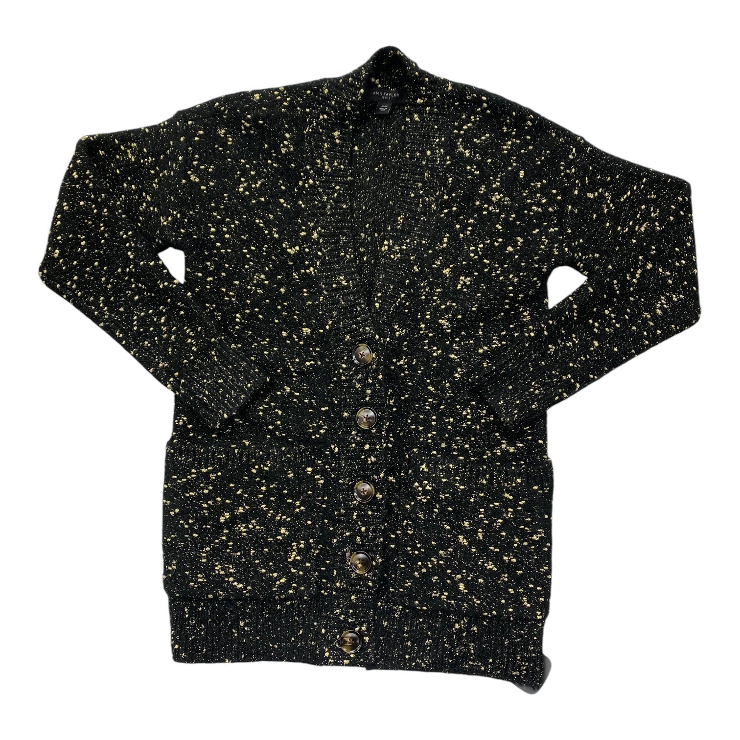 Sweater Cardigan By Ann Taylor In Black & Gold, Size: Xsp