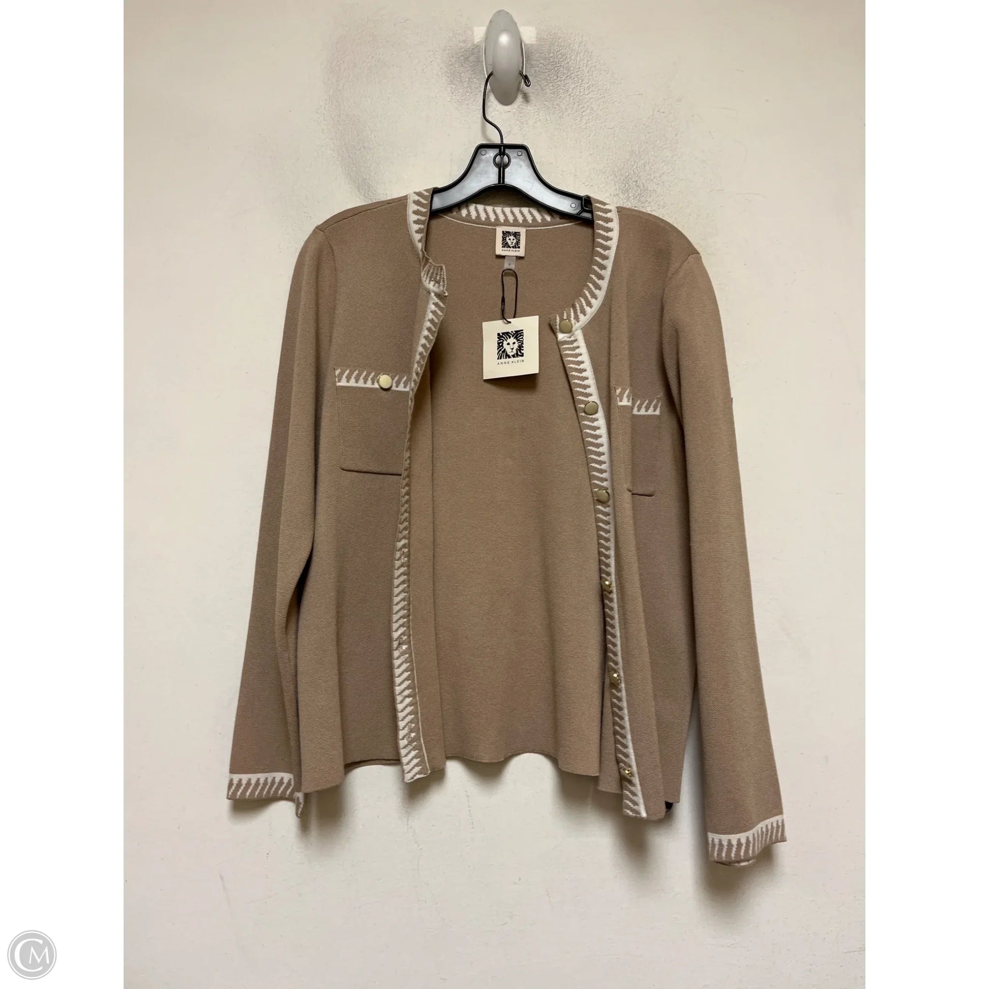Sweater Cardigan By Anne Klein In Tan, Size: M