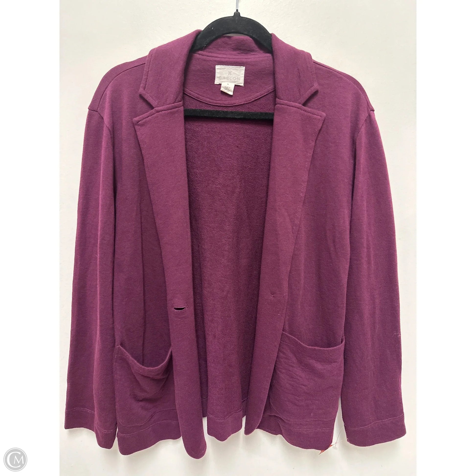 Caslon's Purple Sweater Cardigan, Size M, epitomizes sophistication with its cozy knit and versatile style.