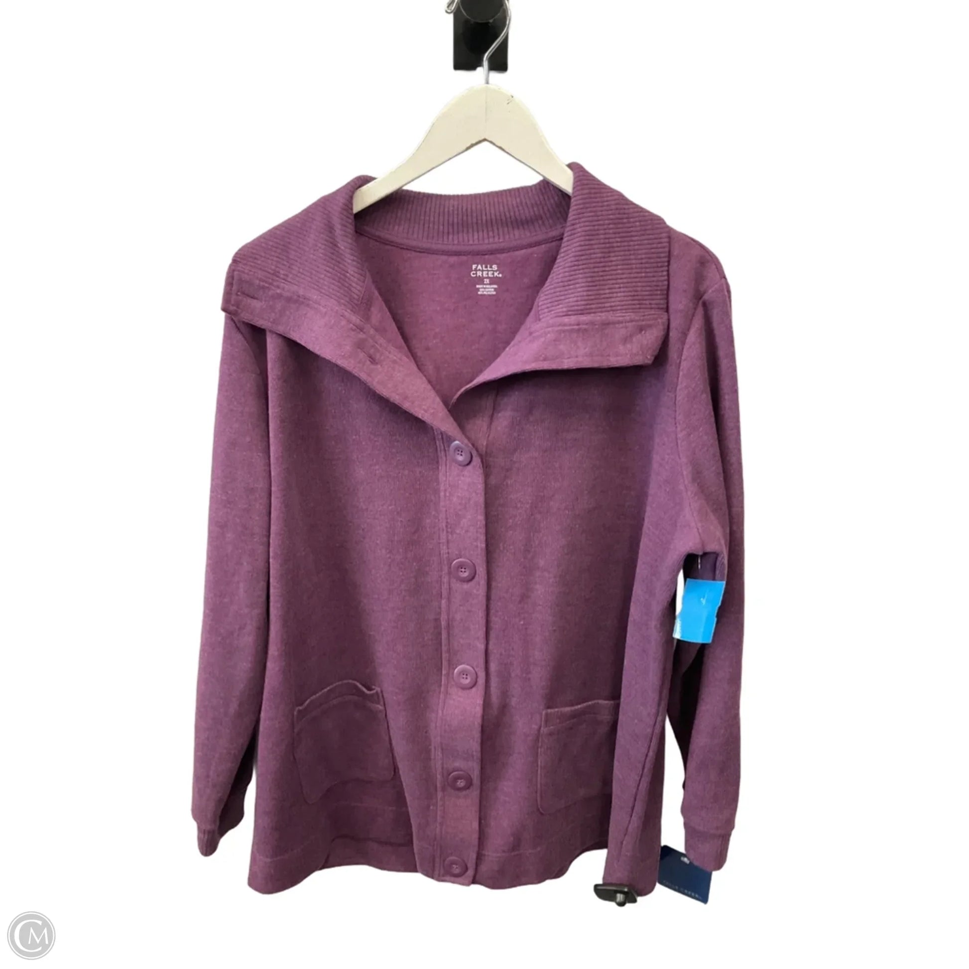Stay cozy and chic in this Falls Creek Purple Cardigan, Size 2x. Effortless style with a touch of elegance.