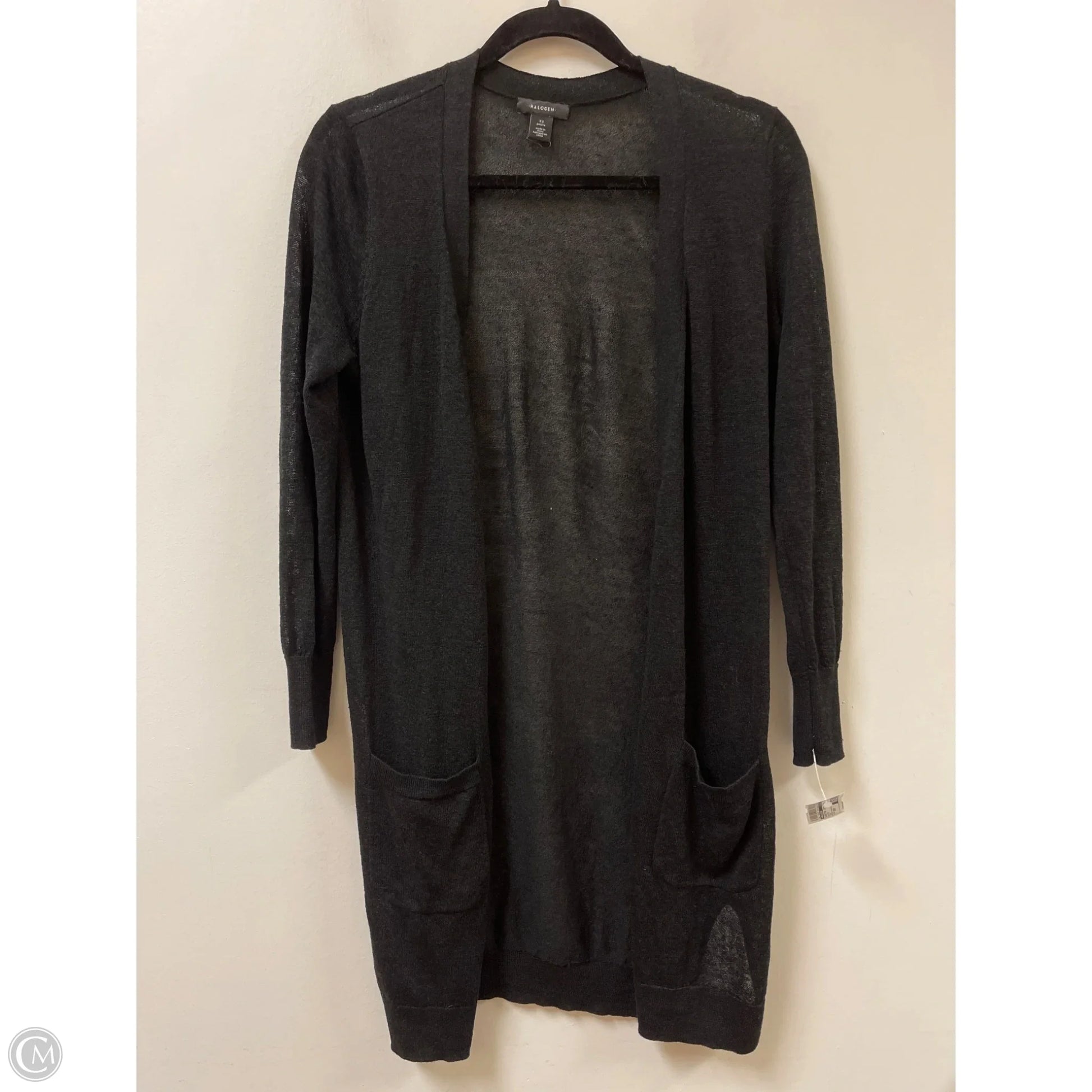 Stay snug in the Halogen black sweater cardigan, XSP size. Embrace warmth and style with this cozy must-have.