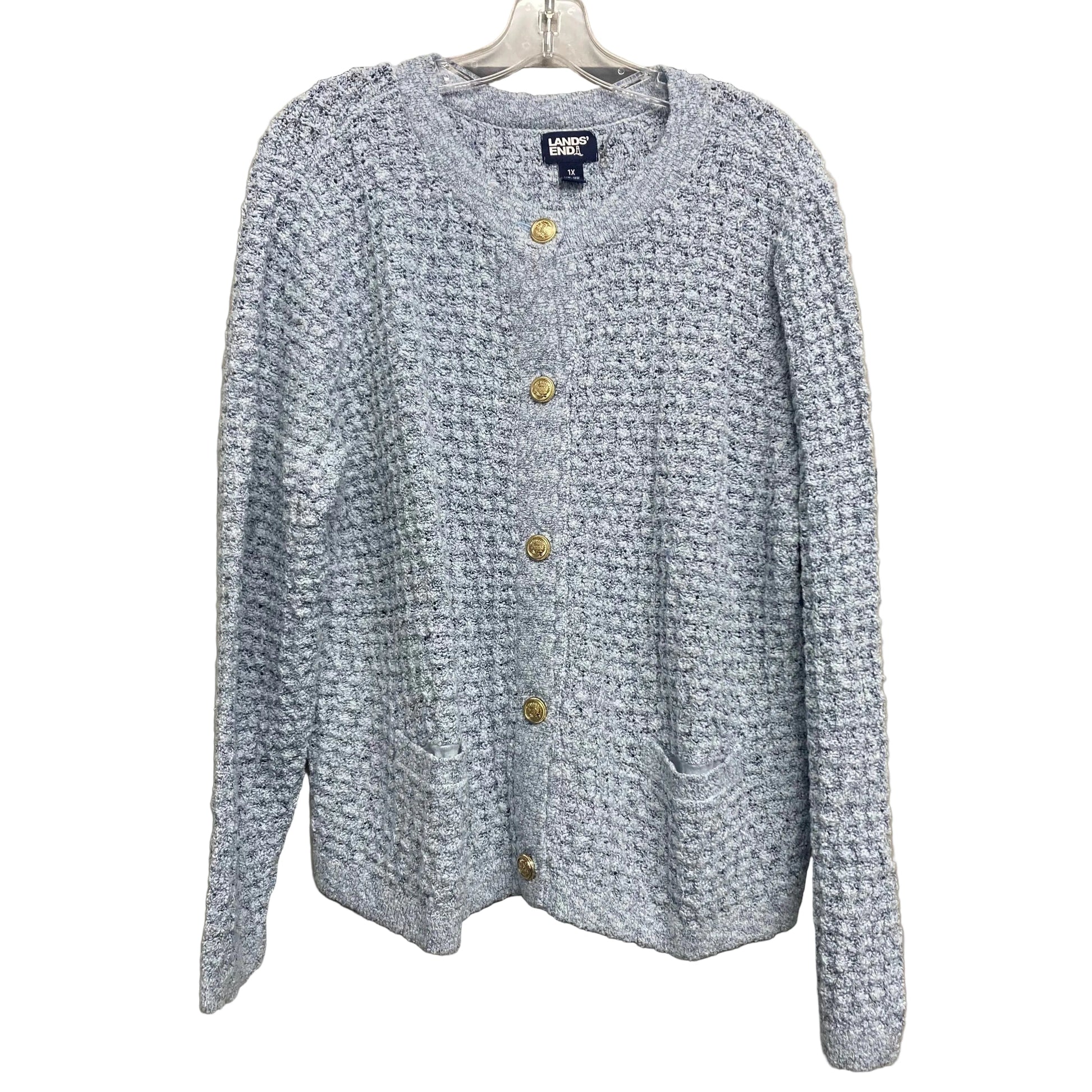 Sweater Cardigan By Lands End In Blue, Size:1X