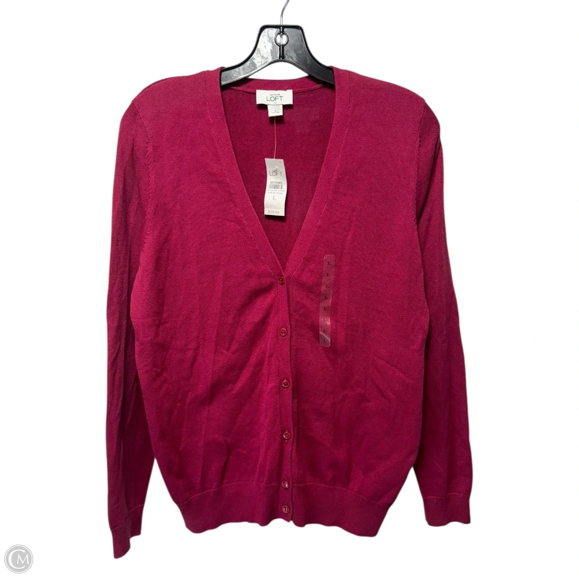 Sweater Cardigan By Loft In Pink, Size: L