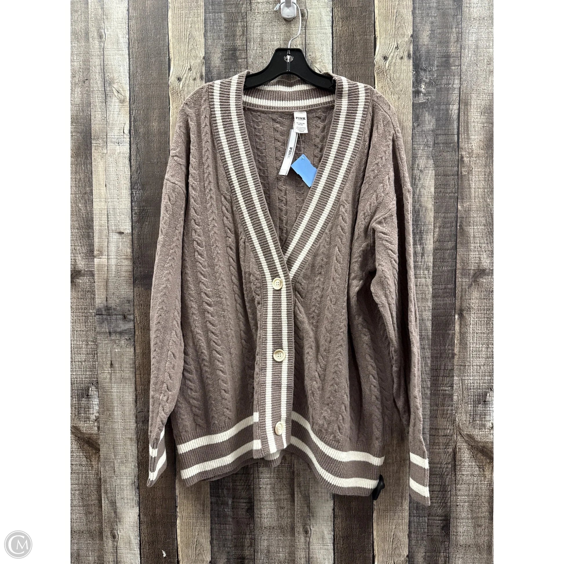 Sweater Cardigan By Pink In Brown, Size: Xxl