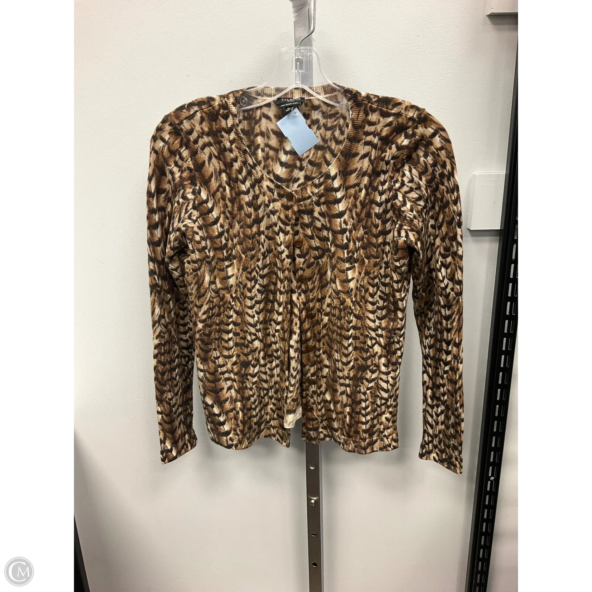 Sweater Cardigan By Talbots In Brown & Cream, Size: Sp