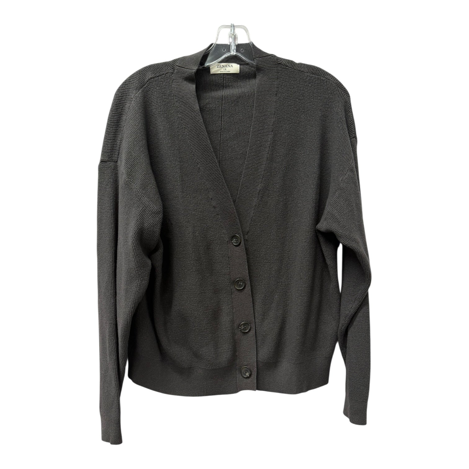 Sweater Cardigan By Zenana In Grey, Size:1X
