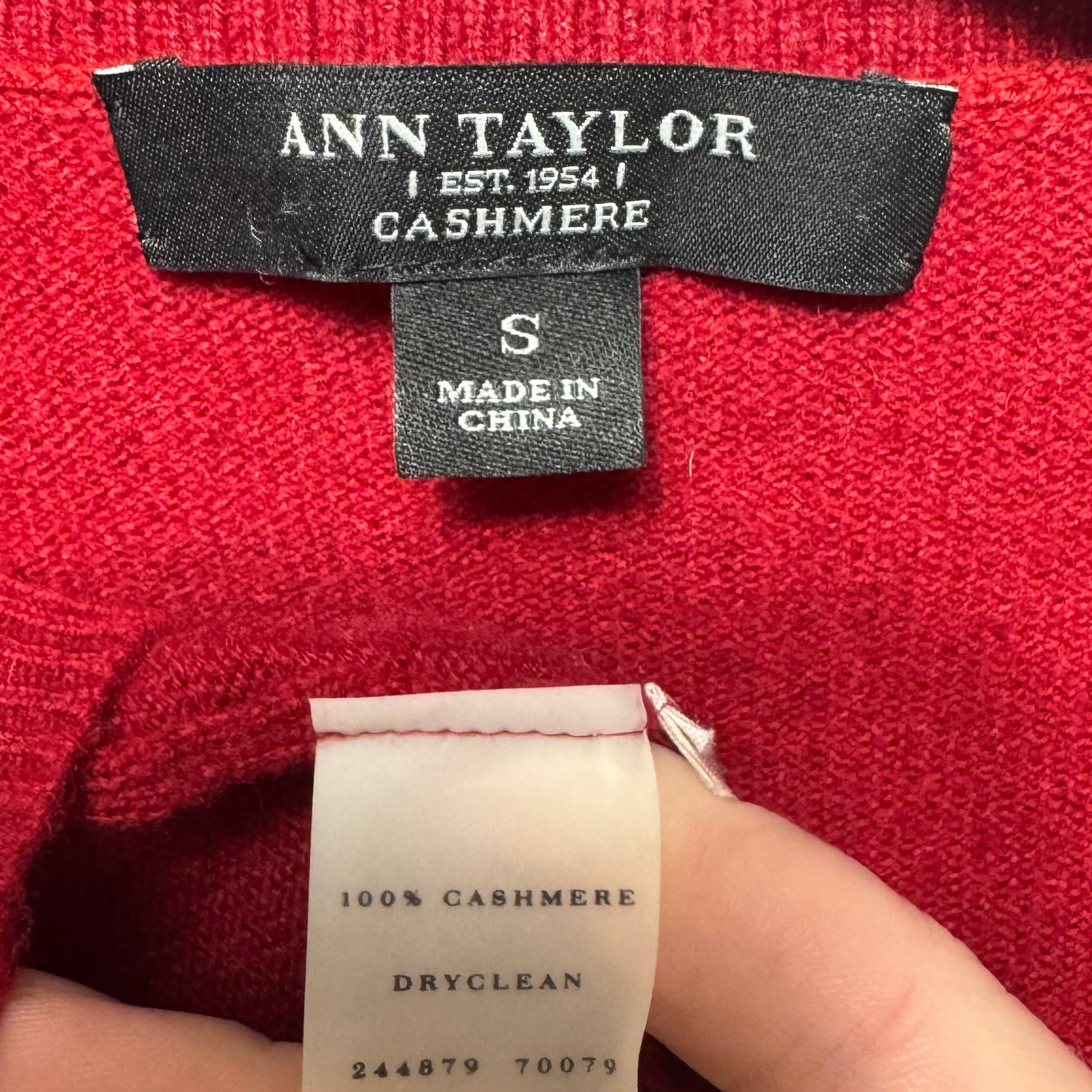 Indulge in luxurious comfort with Ann Taylor's Red Cashmere Sweater in Size S. Crafted with premium cashmere, this cozy piece exudes elegance. Feel confident and stylish in this vibrant, timeless essential. Add a touch of sophistication to your wardrobe today.