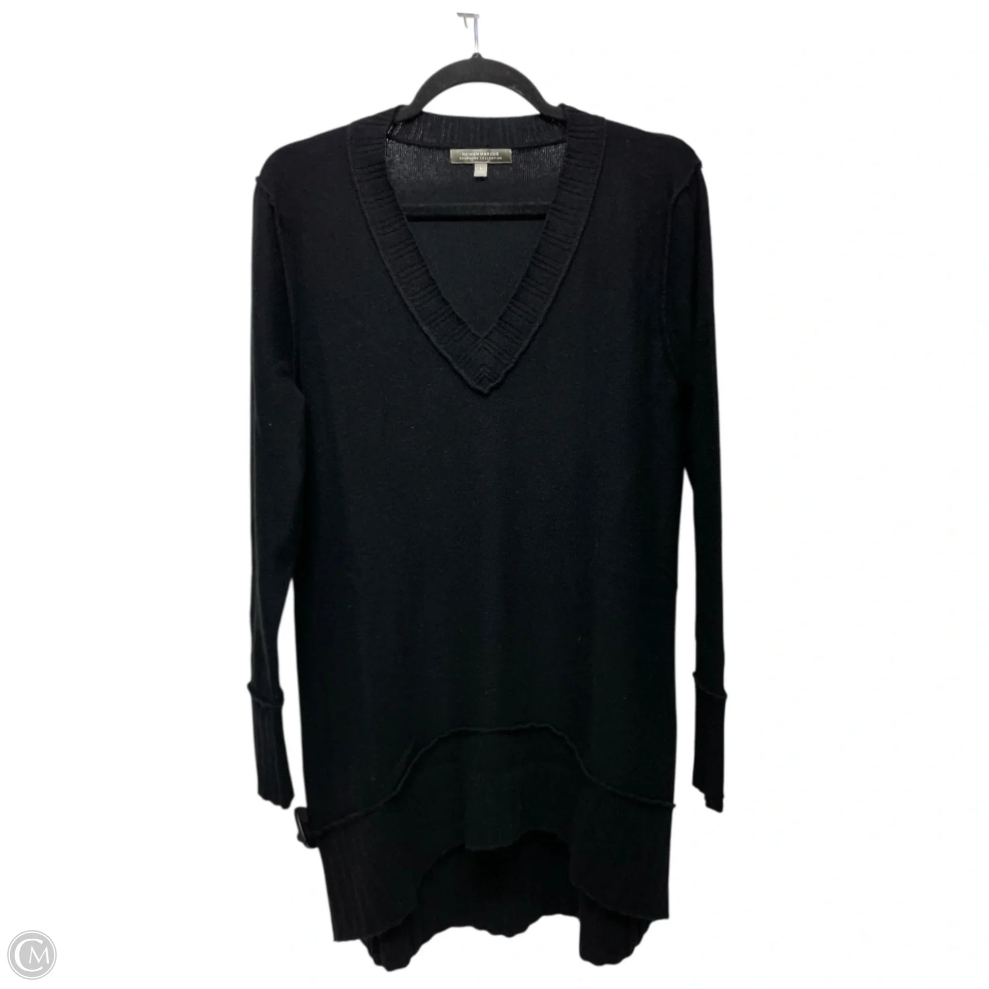 Discover the sophisticated allure of this Neiman Marcus black sweater in size L. Luxuriously crafted, perfect for timeless elegance.