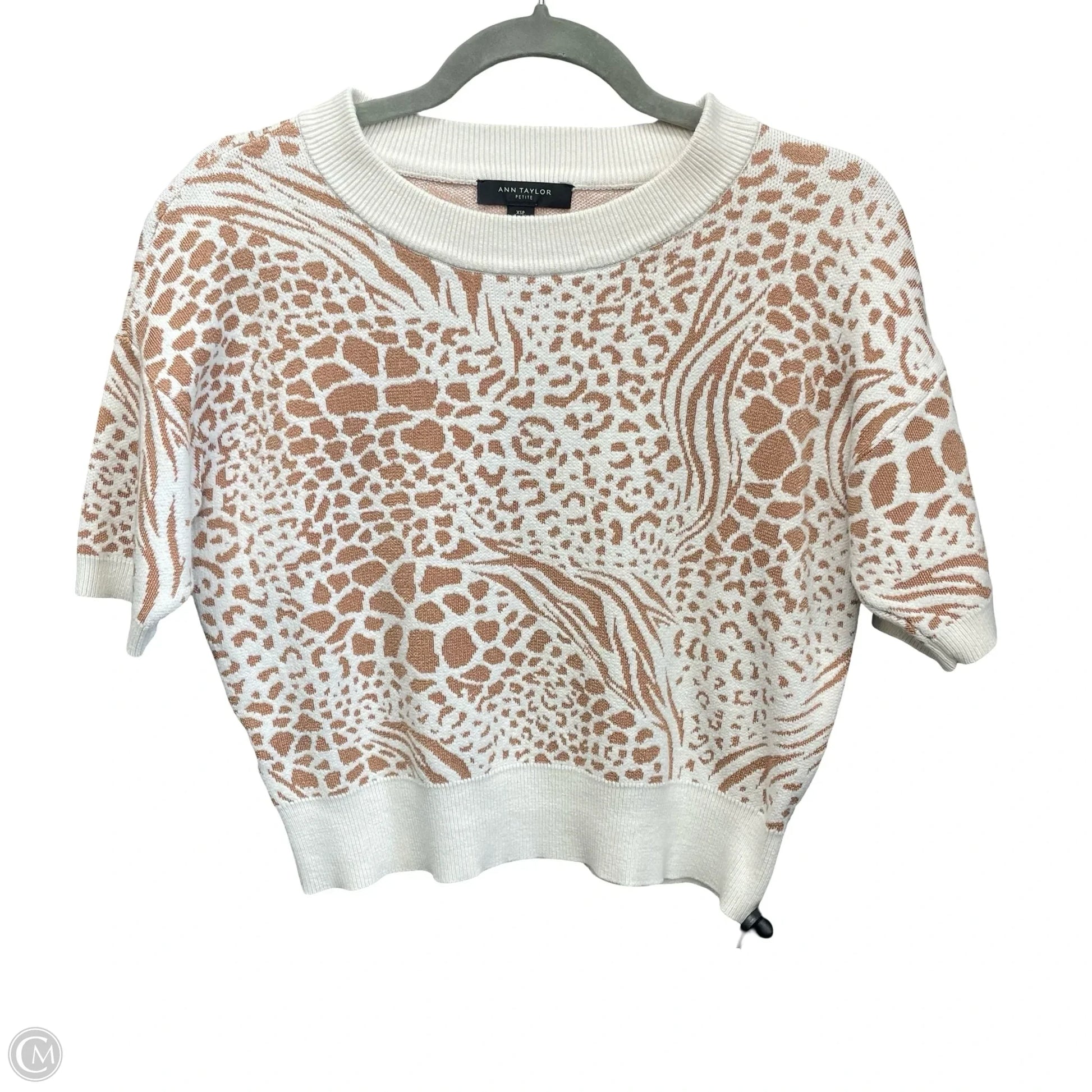 Sweater Short Sleeve By Ann Taylor In Tan & White, Size: Xsp