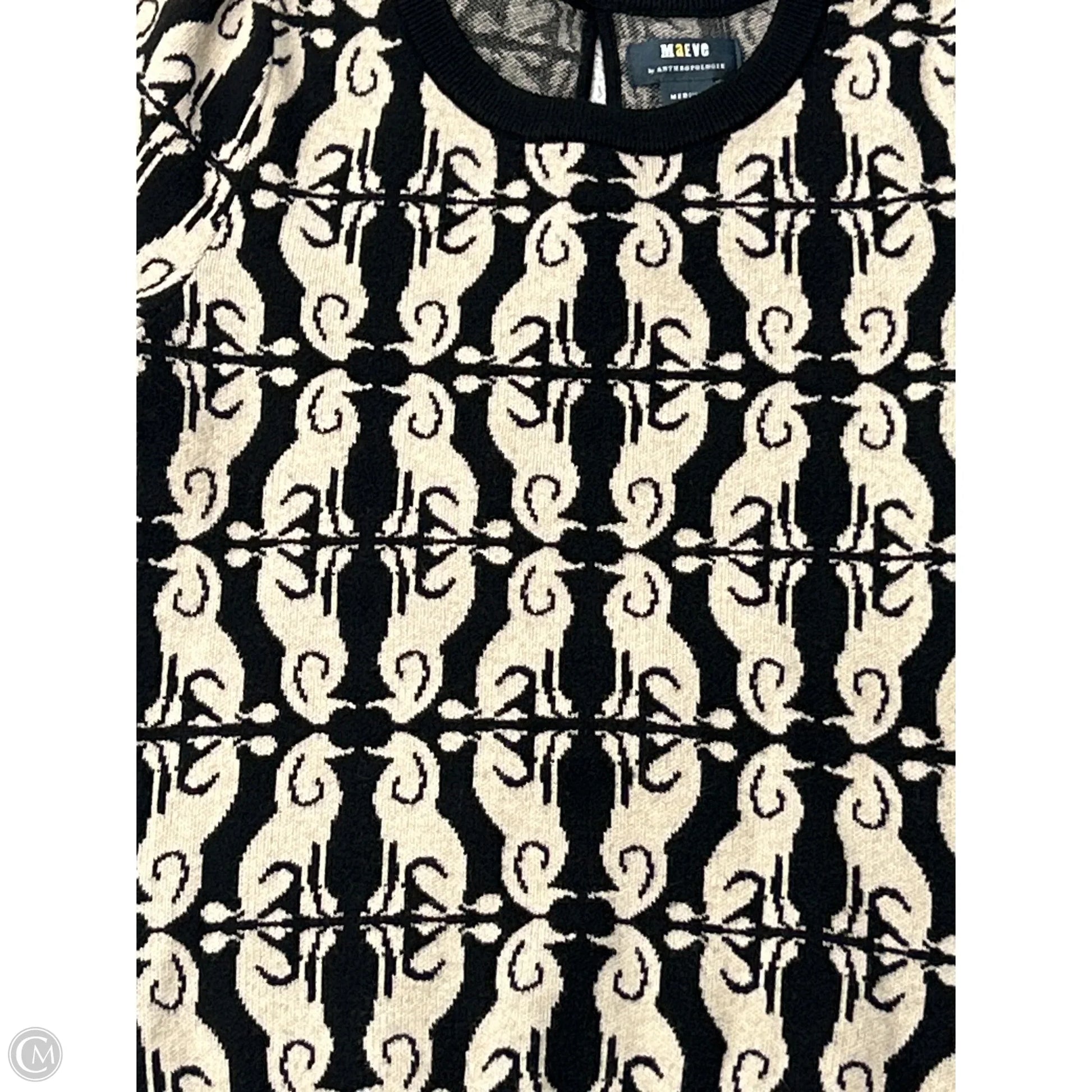Sweater Short Sleeve By Anthropologie In Black & Cream, Size: M
