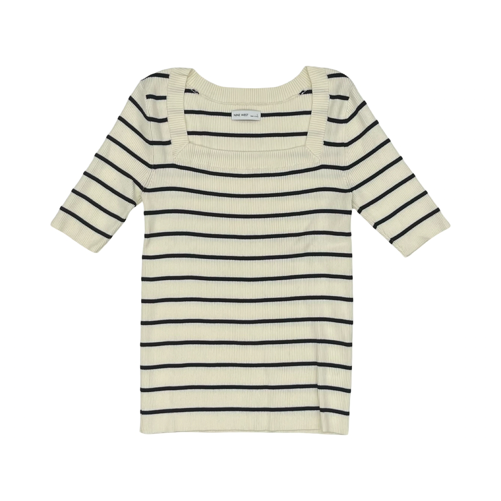 Sweater Ss By Nine West Apparel In Black & Cream, Size:L