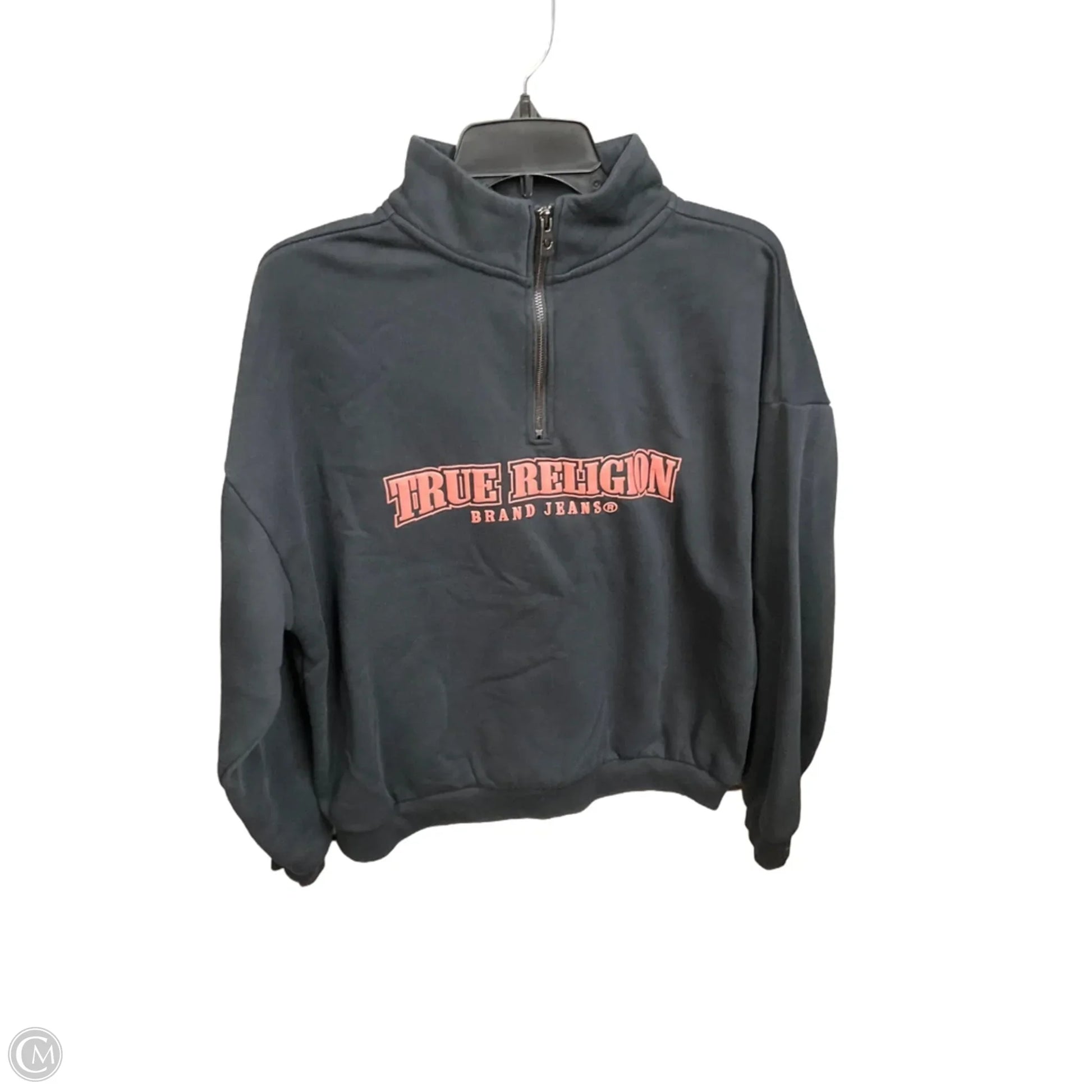 True Religion's Sweatshirt Collar in sleek black, size M, offers comfort and style effortlessly. Crafted with premium quality fabric for a snug fit, this piece exudes casual sophistication. Elevate your everyday look with this wardrobe essential.