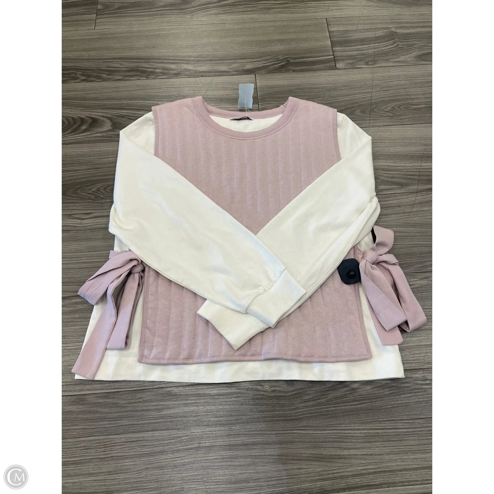 Sweatshirt Collar By Zara In Pink & White, Size: L