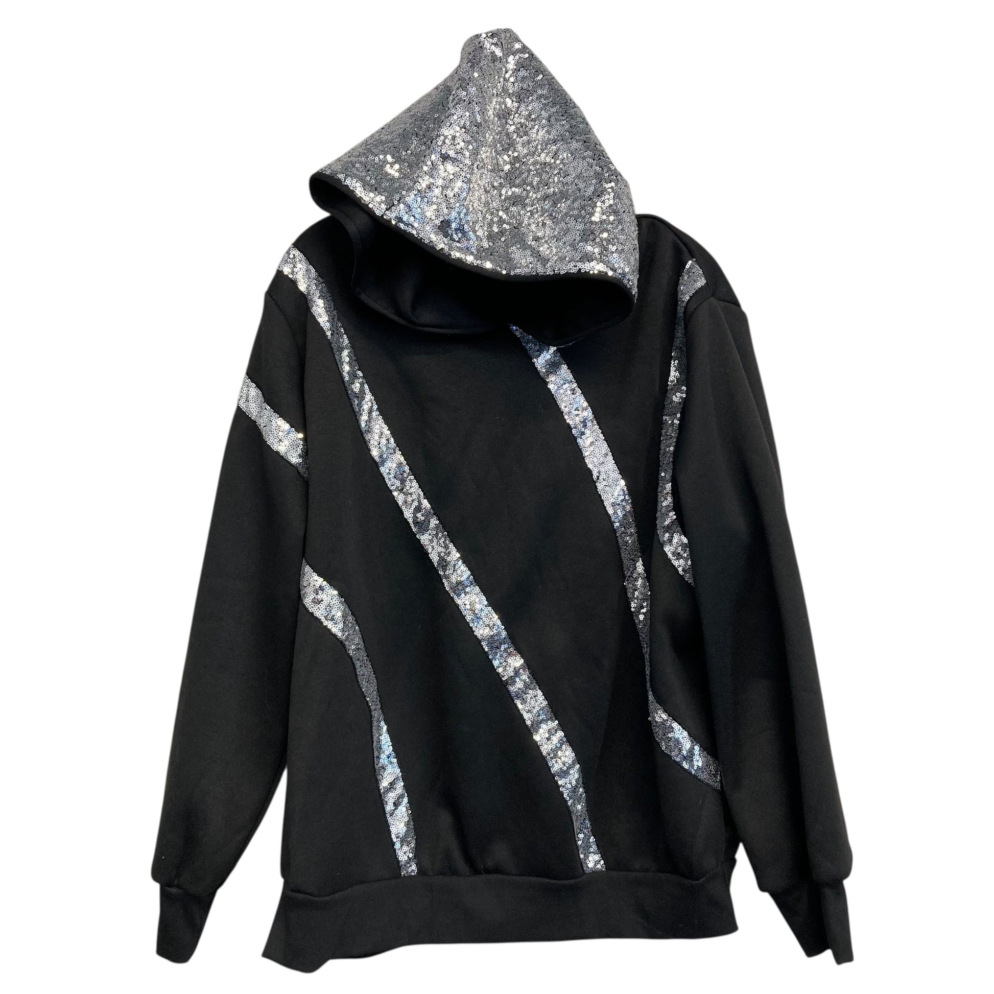 Indulge in cozy luxury with Shein's Black & Silver Sweatshirt Hoodie in XL. Crafted for comfort and style, this piece exudes elegance and sophistication effortlessly. Upgrade your wardrobe today.