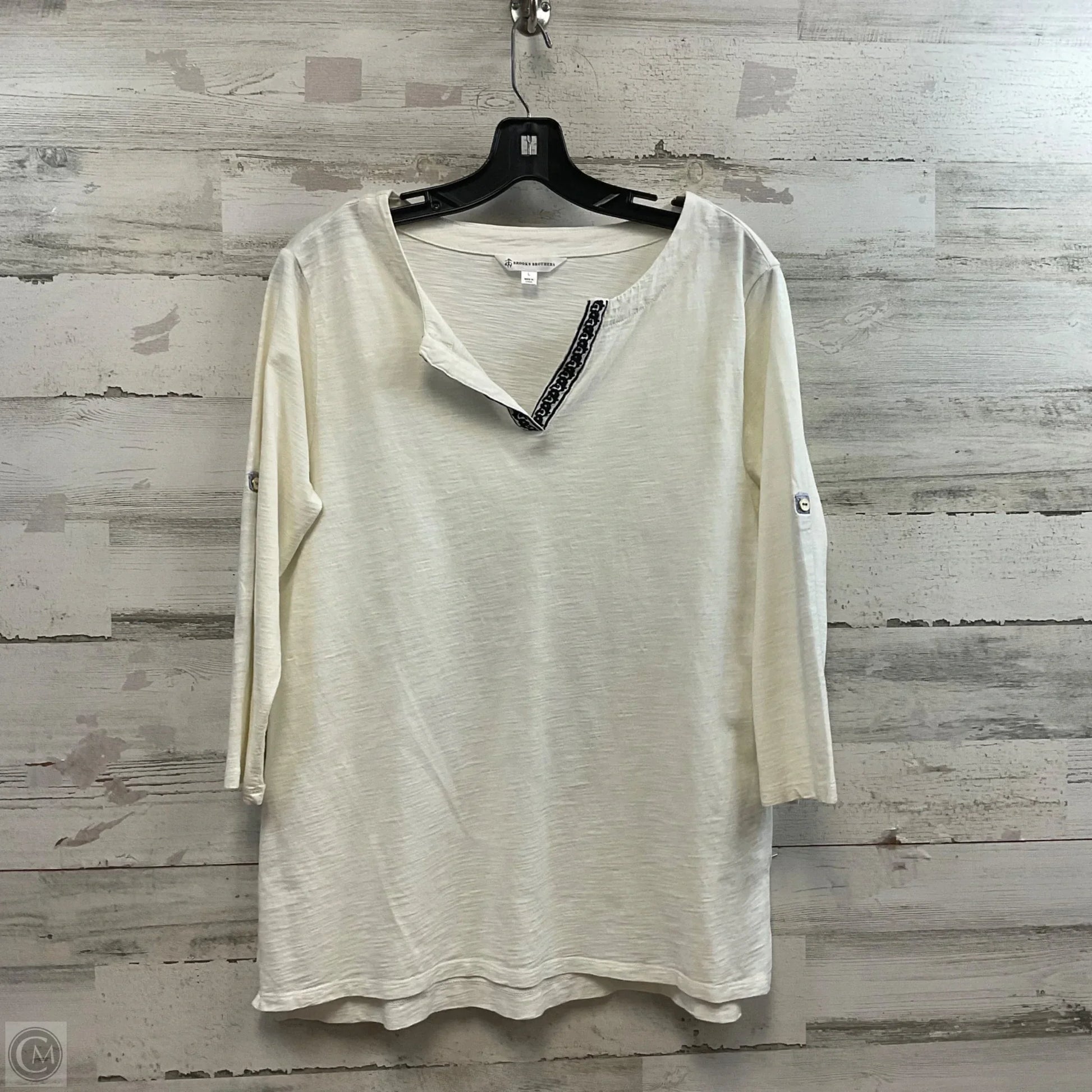 Top 3/4 Sleeve By Brooks Brothers In White, Size: L