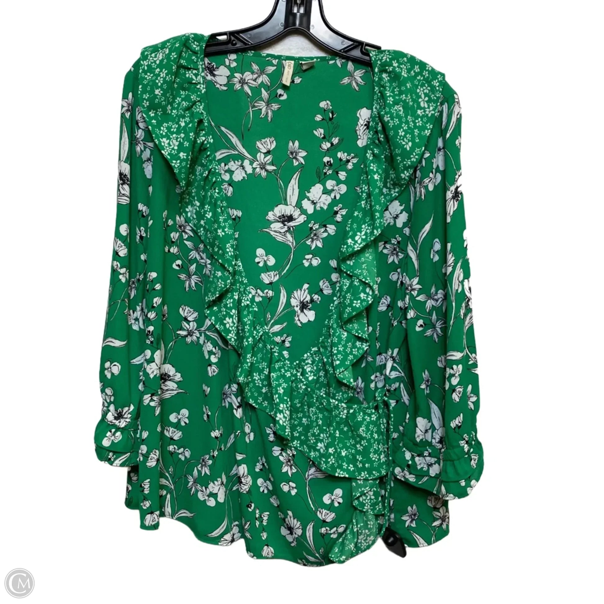 Top 3/4 Sleeve By Cato In Green & White, Size: Xl