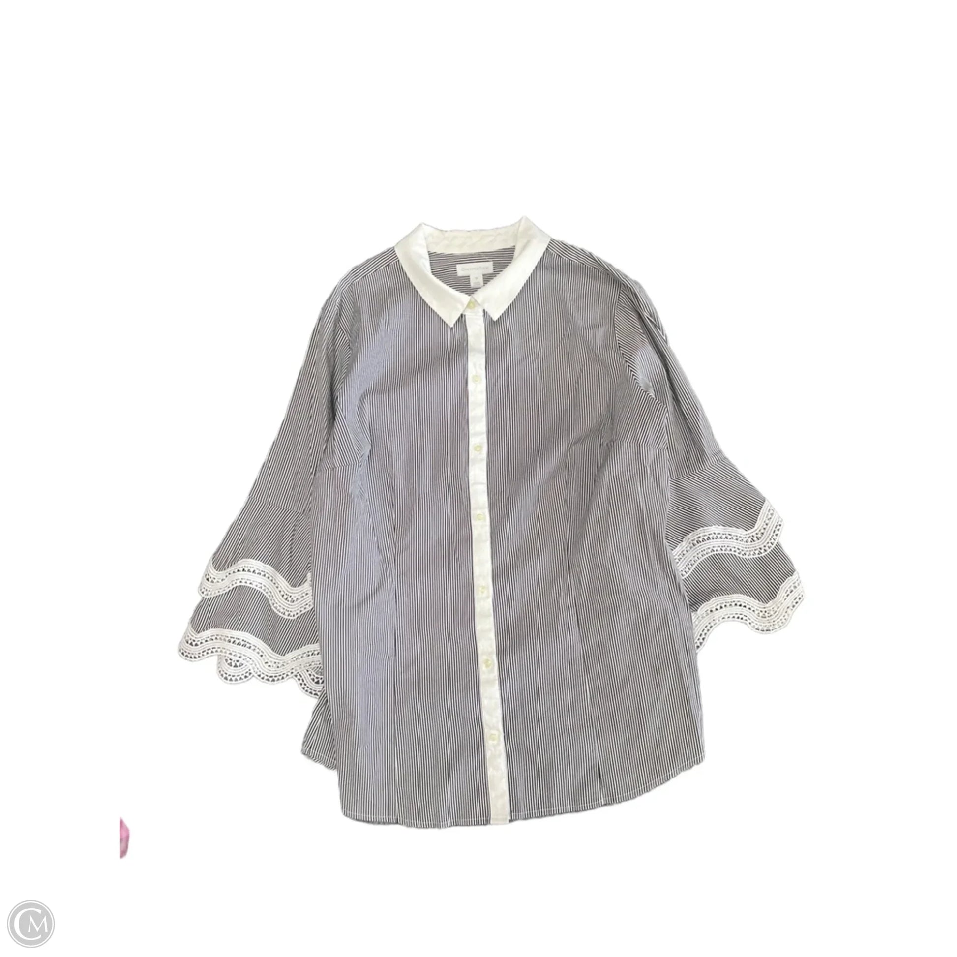 Top 3/4 Sleeve By Charter Club In Black & White, Size: 16