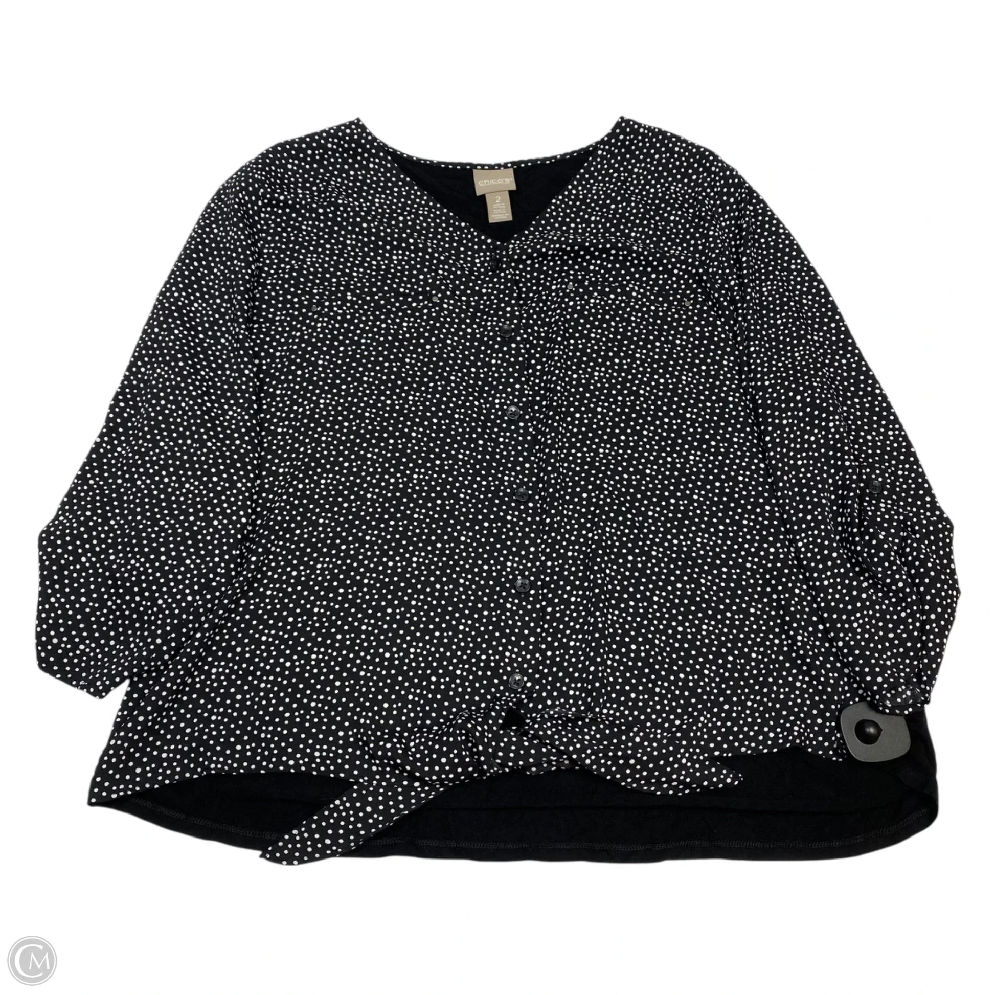 Top 3/4 Sleeve By Chicos In Black & White, Size: L