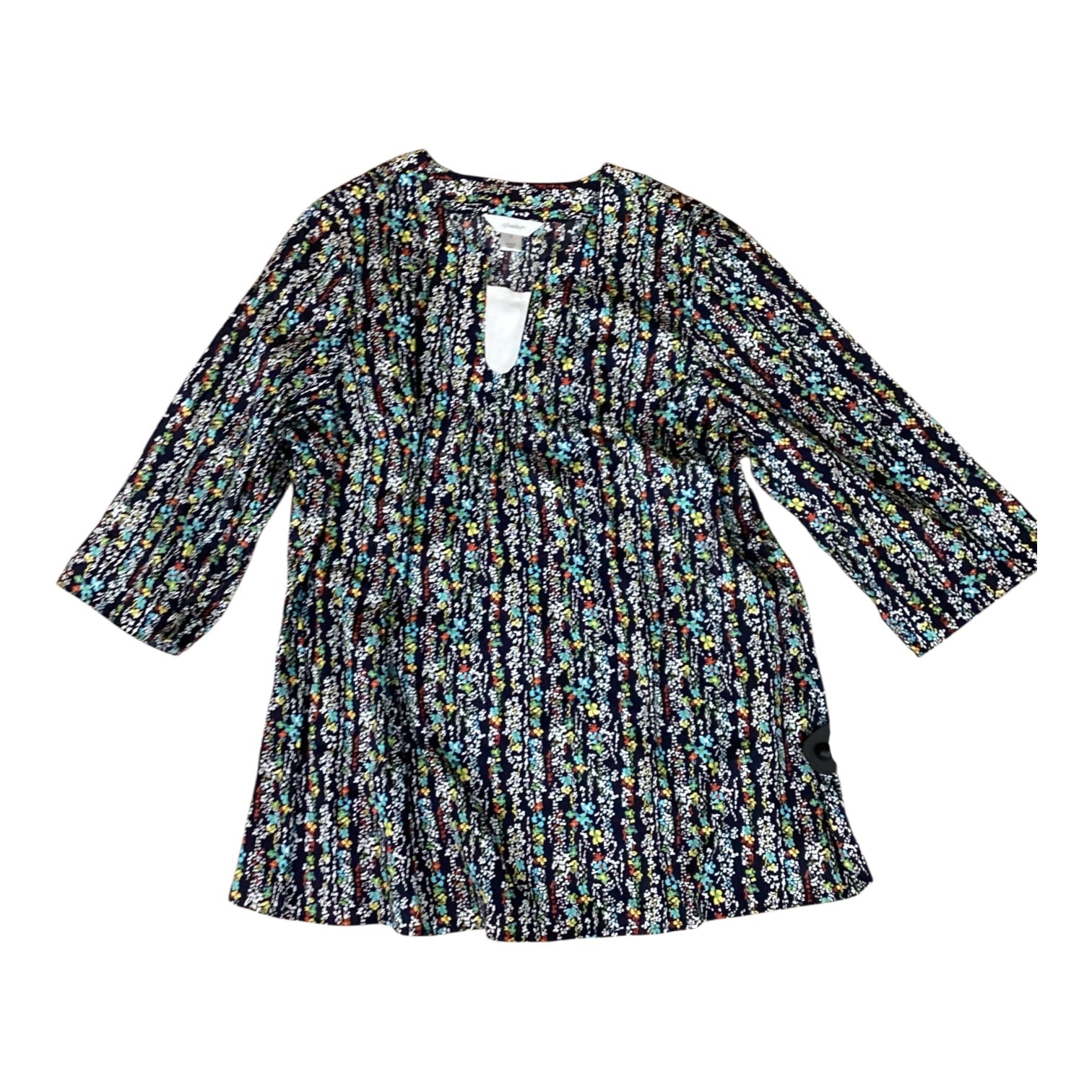 CJ Banks navy top, Size 1X, features elegant 3/4 sleeves for timeless style.