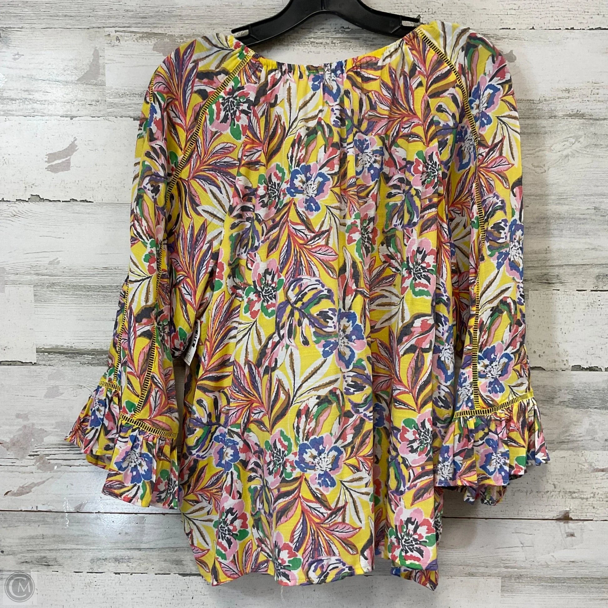 Top 3/4 Sleeve By HOPE & HARLOW In Yellow, Size: L