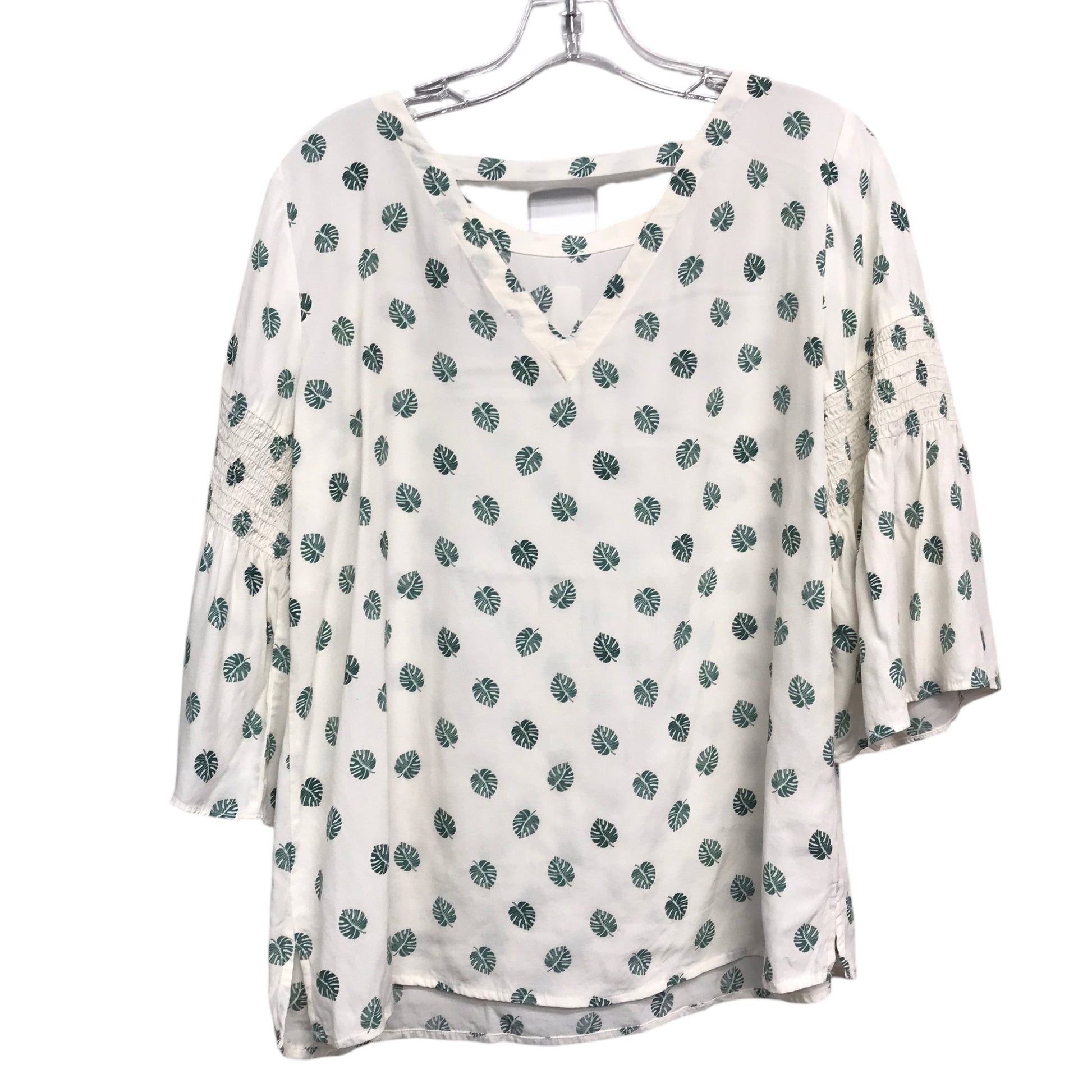 Top 3/4 Sleeve By Loft In Cream & Green, Size:S
