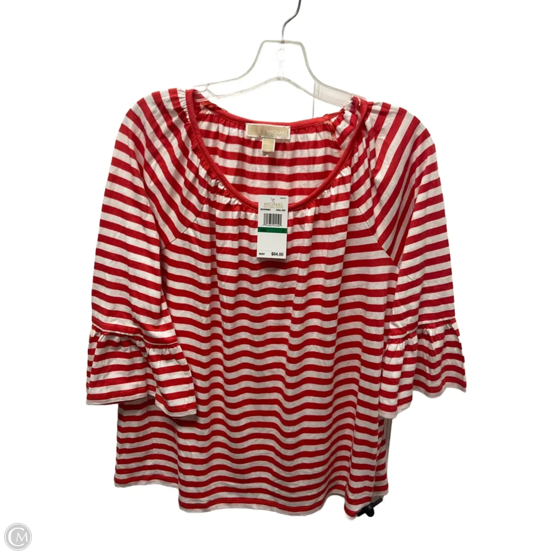 Top 3/4 Sleeve By Michael By Michael Kors In Striped Pattern, Size: L