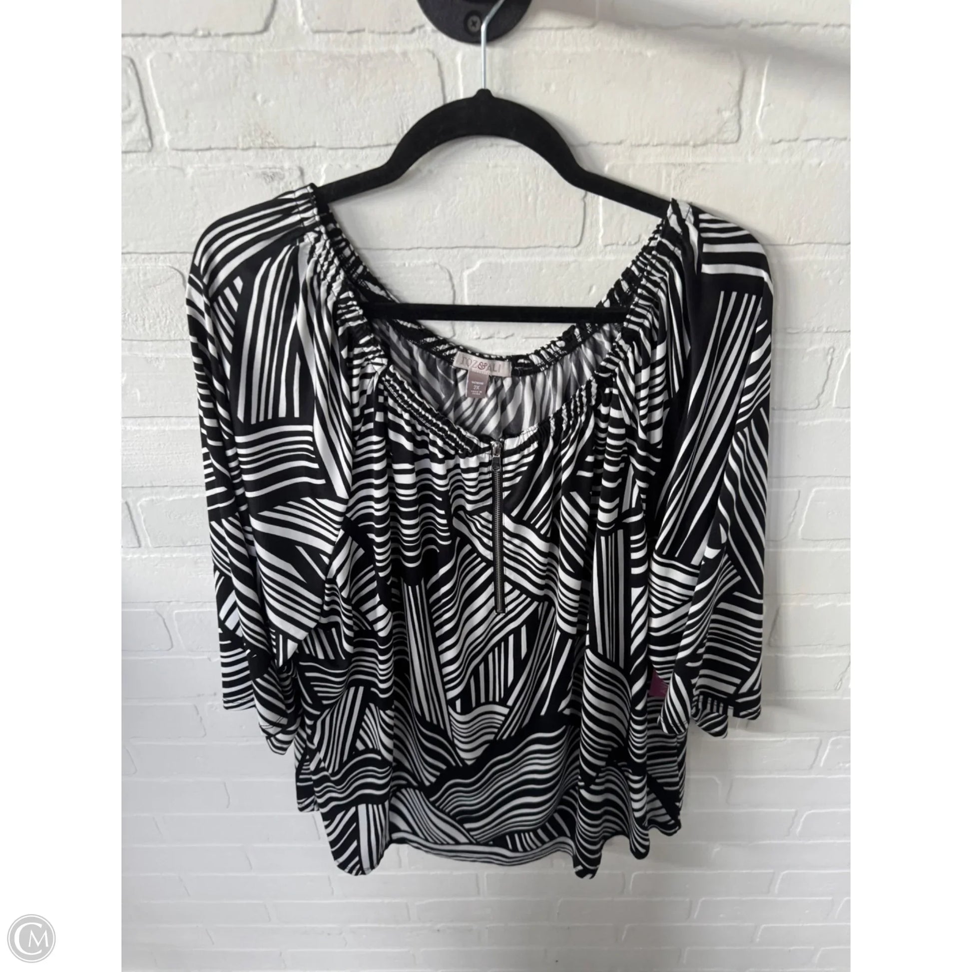 Top 3/4 Sleeve By Roz And Ali In Black & White, Size: 2x