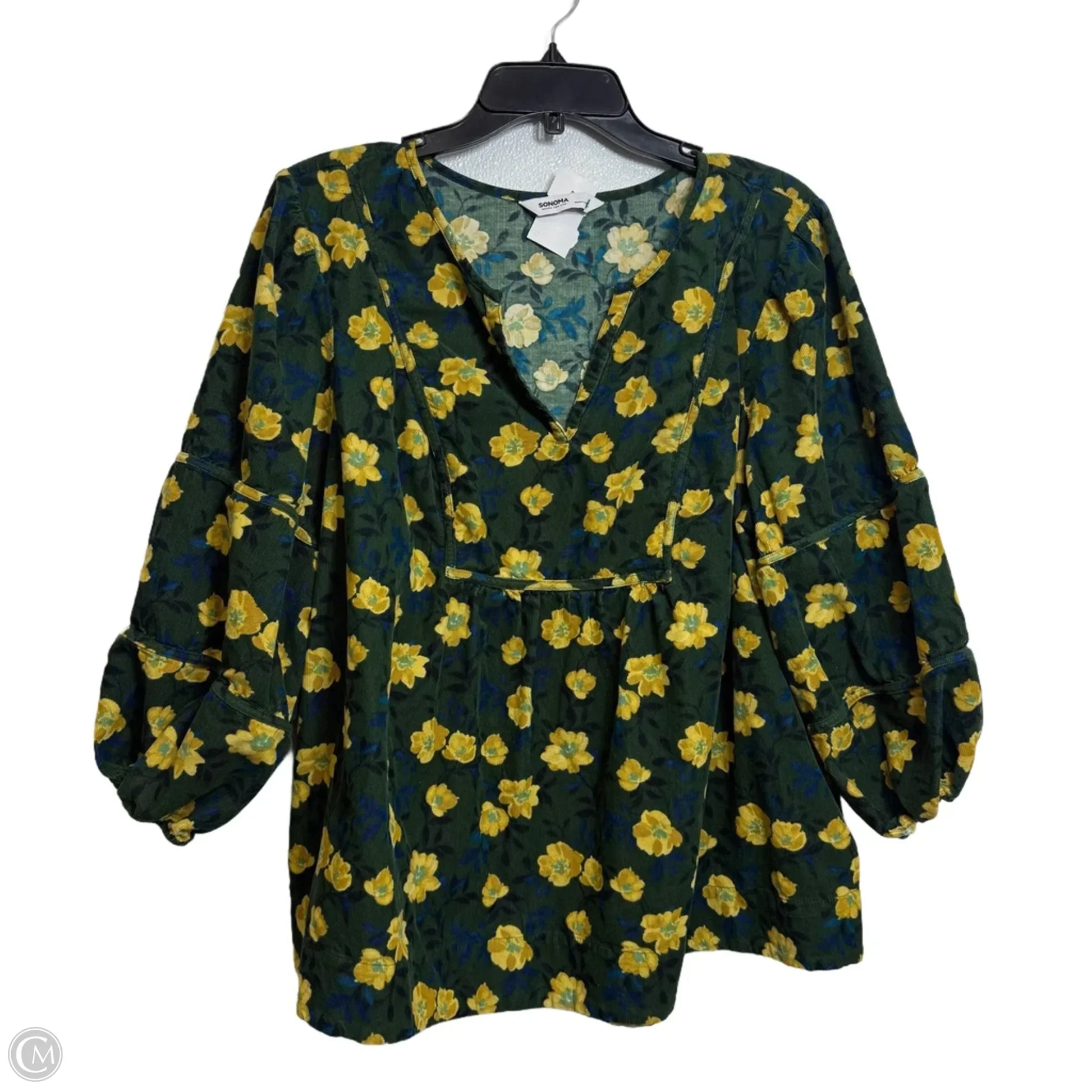 Embrace timeless elegance in this Sonoma 3/4 Sleeve top, size 2X, adorned with a captivating floral print. Effortlessly chic and sophisticated.