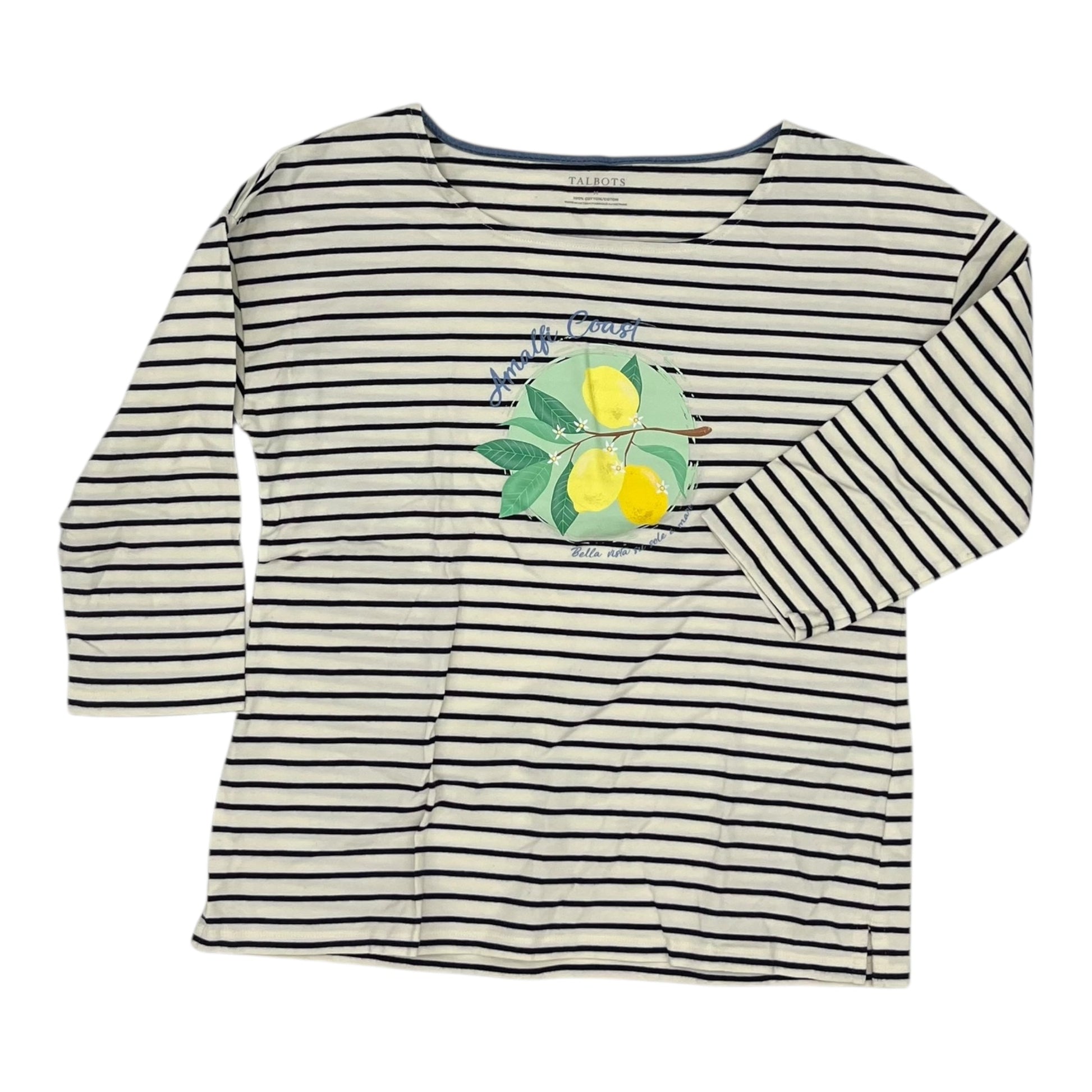 Top 3/4 Sleeve By Talbots In Black & Cream, Size:M