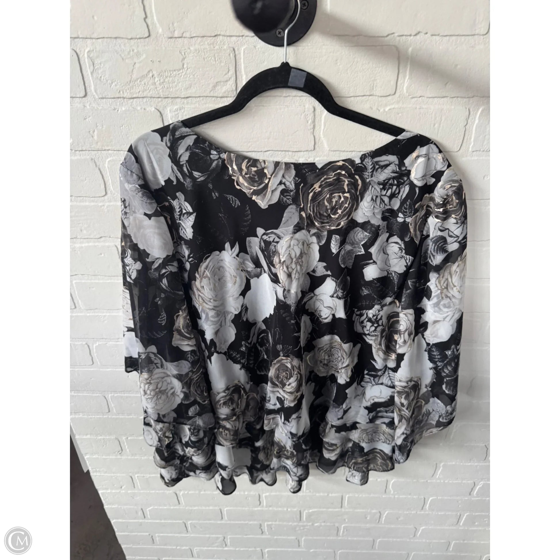 Top Long Sleeve By Alex Evenings In Black & Grey, Size: 3x