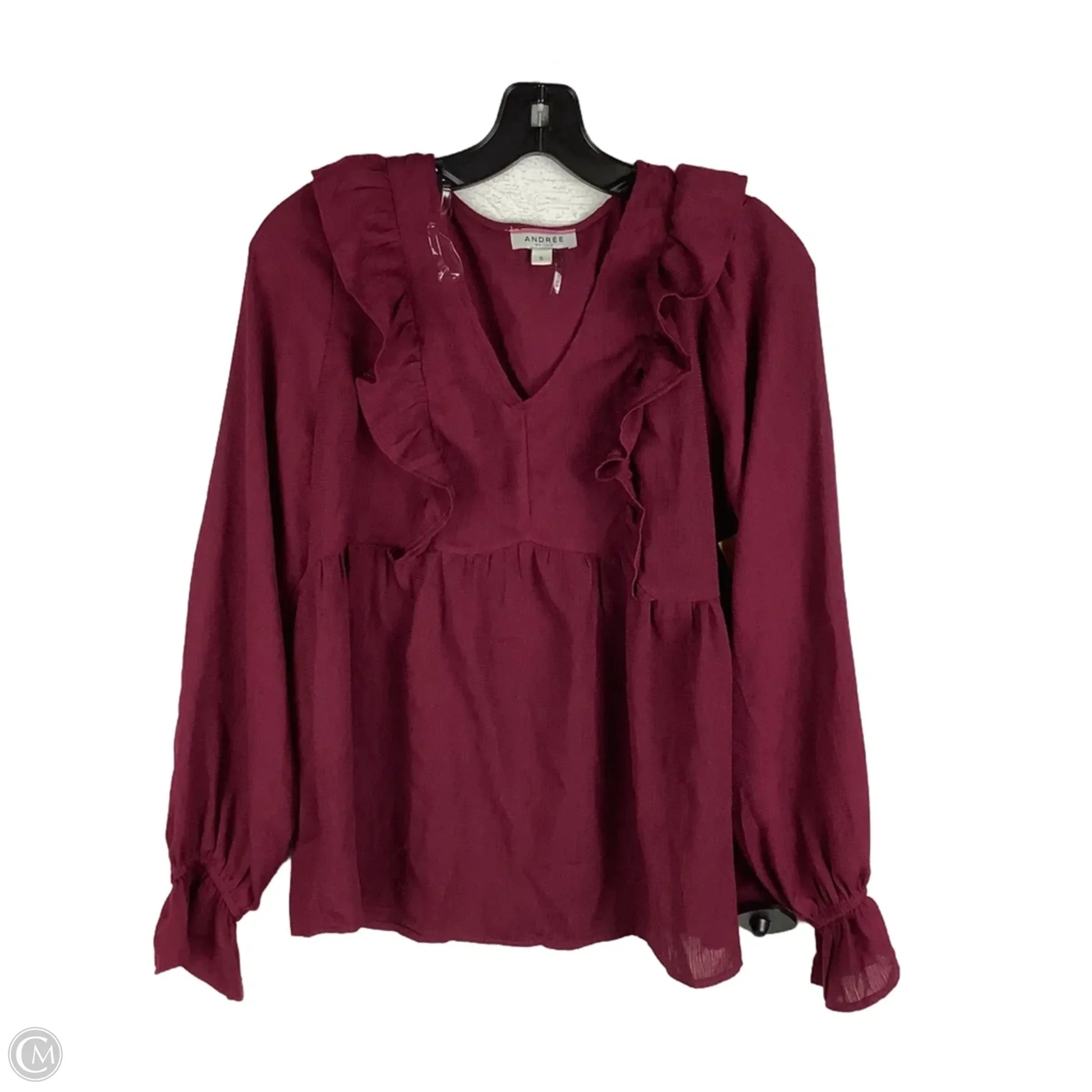 Top Long Sleeve By Andree By Unit In Maroon, Size: S