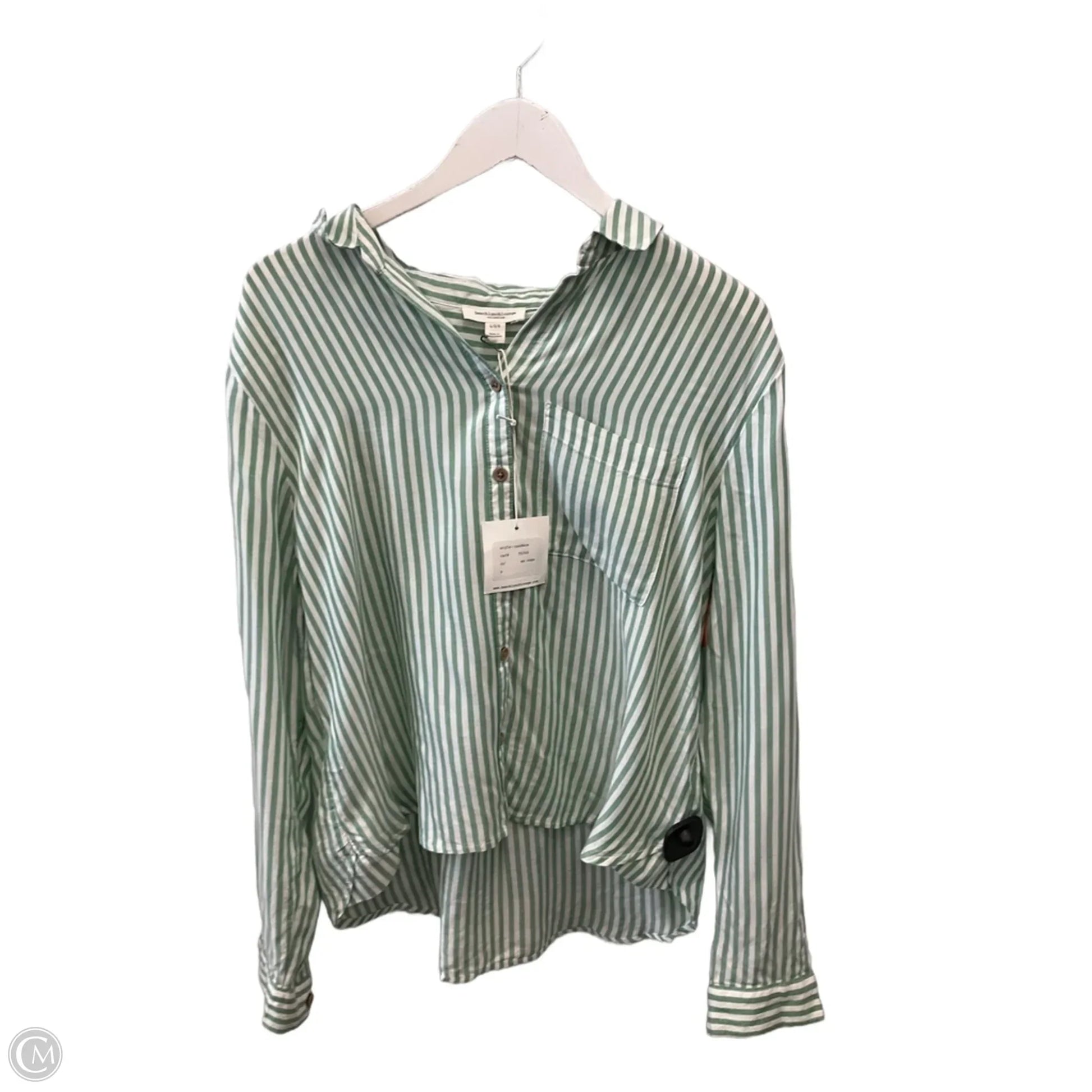 Top Long Sleeve By Beachlunchlounge In Green & White, Size: L