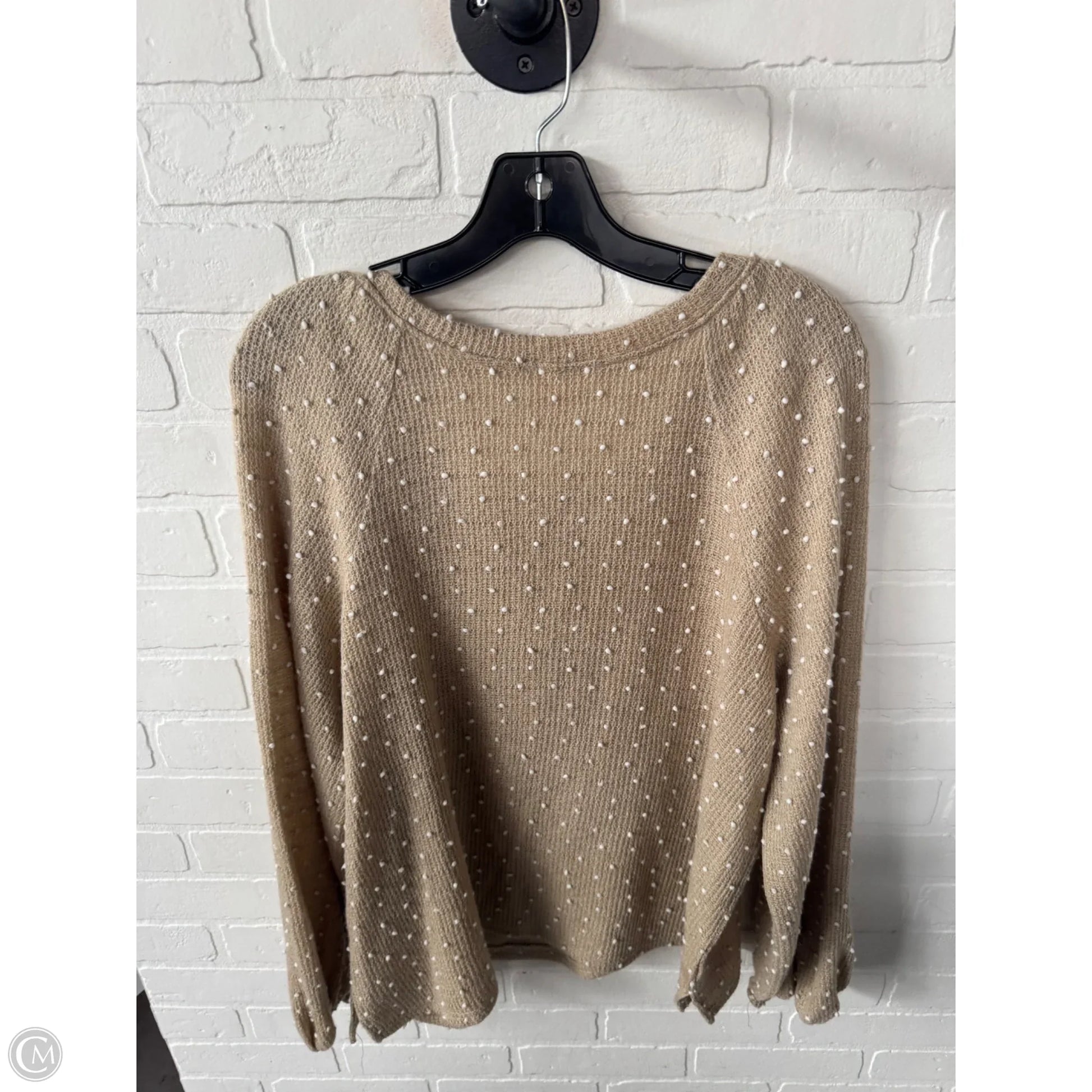 Top Long Sleeve By Blu Pepper In Tan & White, Size: 2x