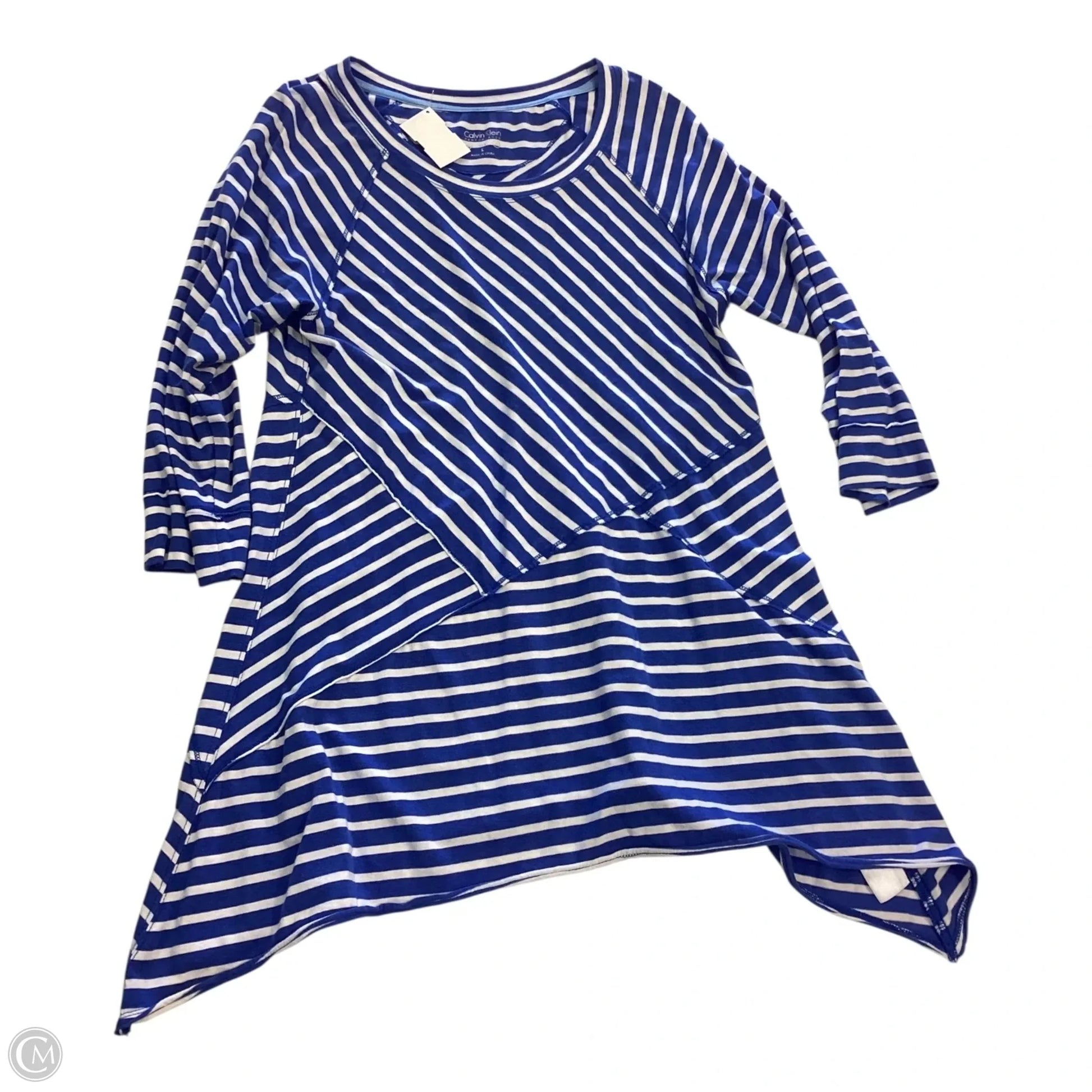 Top Long Sleeve By Calvin Klein In Striped Pattern, Size: L