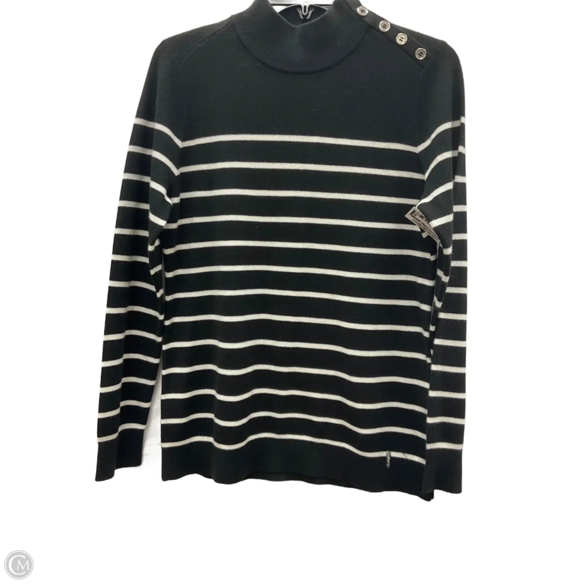 Top Long Sleeve By Calvin Klein In Striped Pattern, Size: M