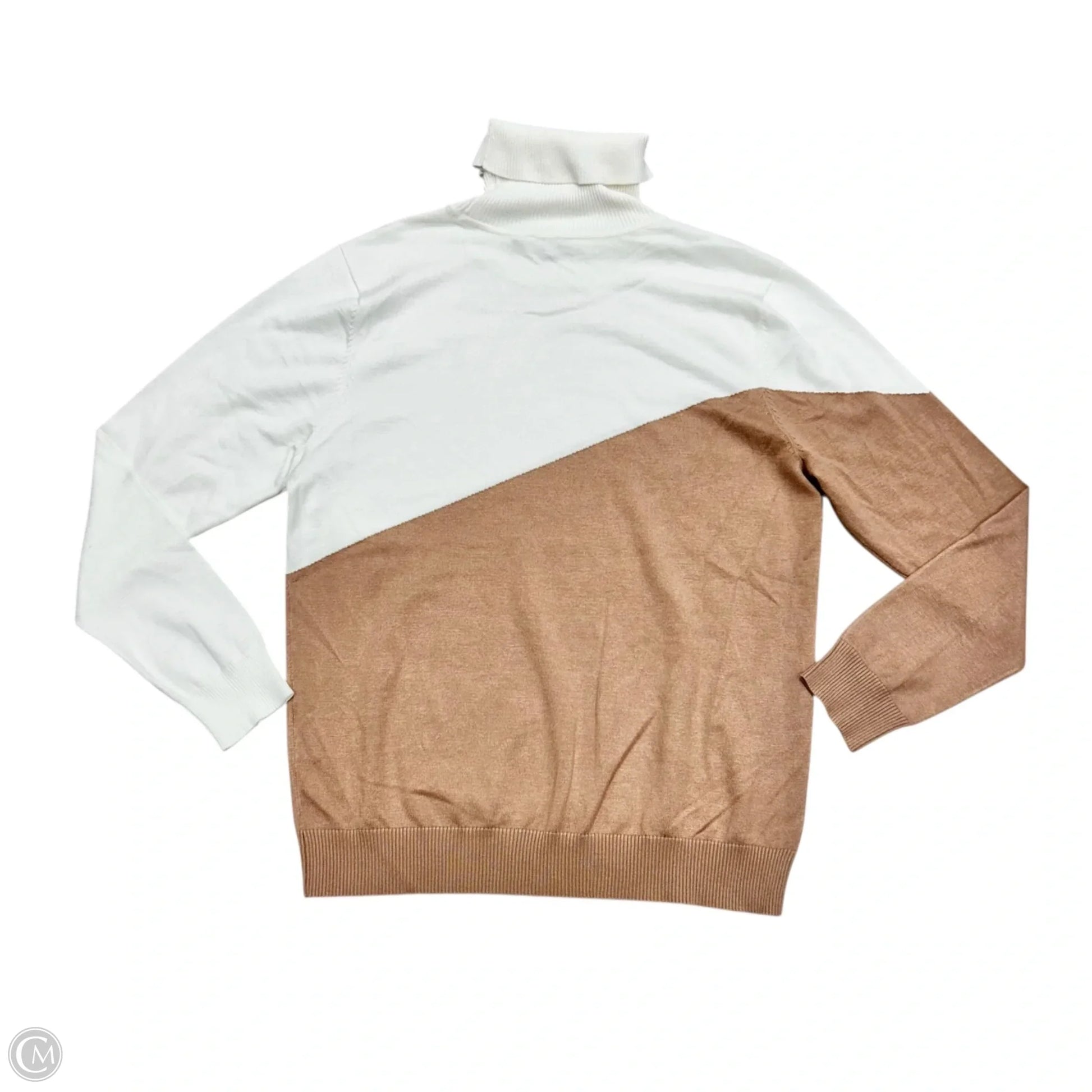 Top Long Sleeve By Calvin Klein In Tan & White, Size: Xl