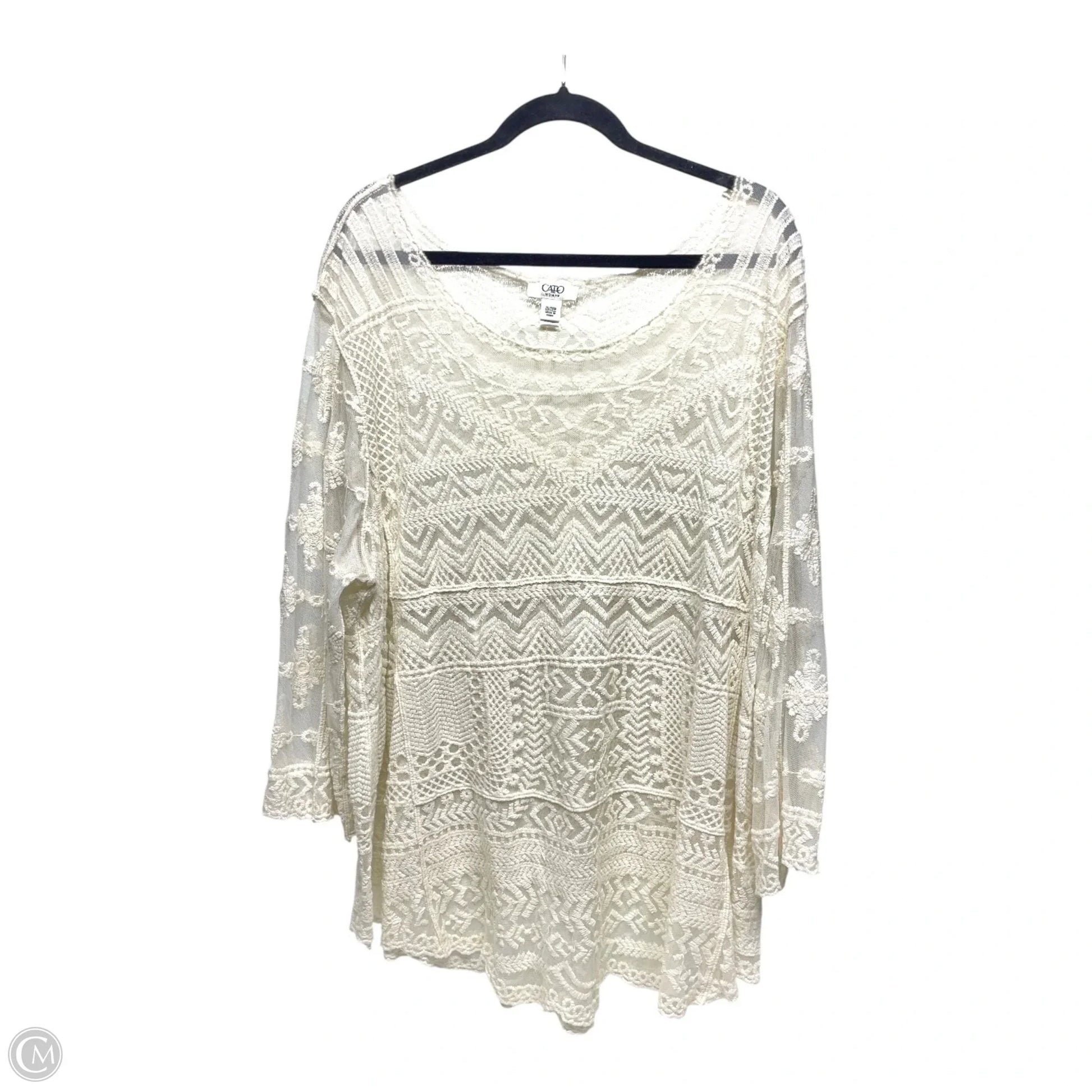 Top Long Sleeve By Cato In White, Size: 4x