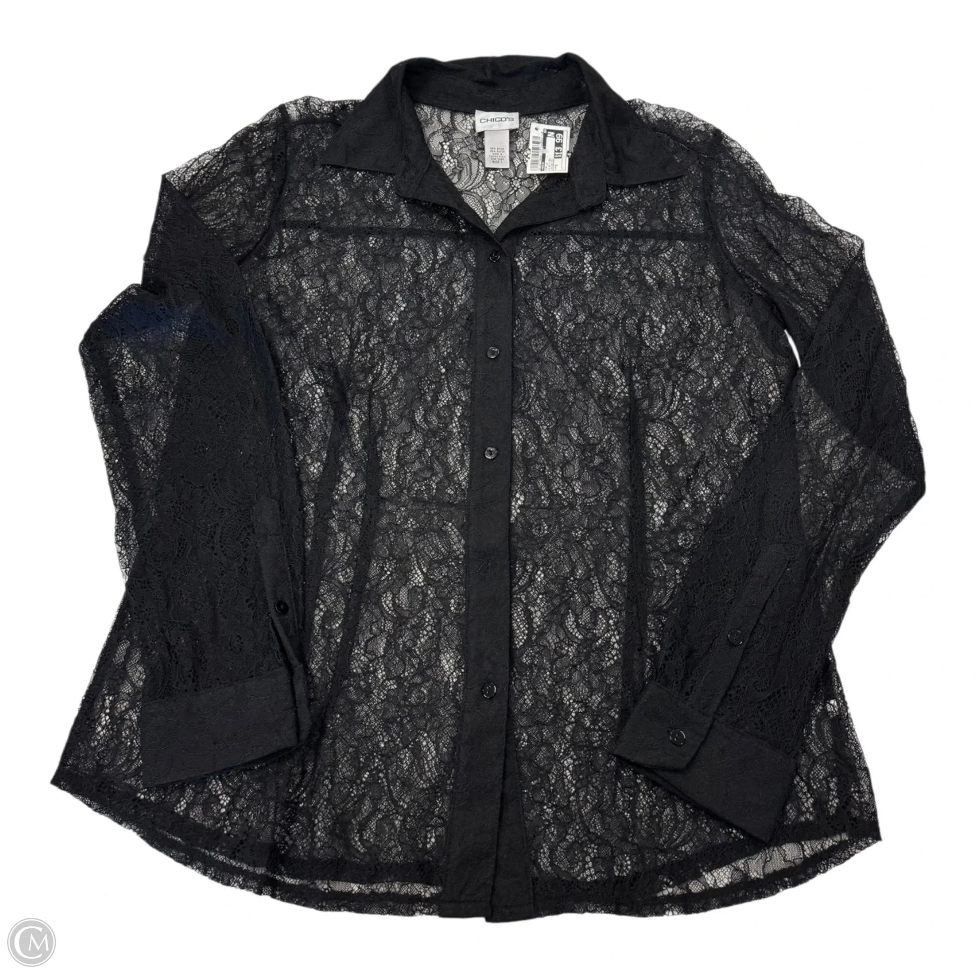 Top Long Sleeve By Chicos In Black & Cream, Size: M