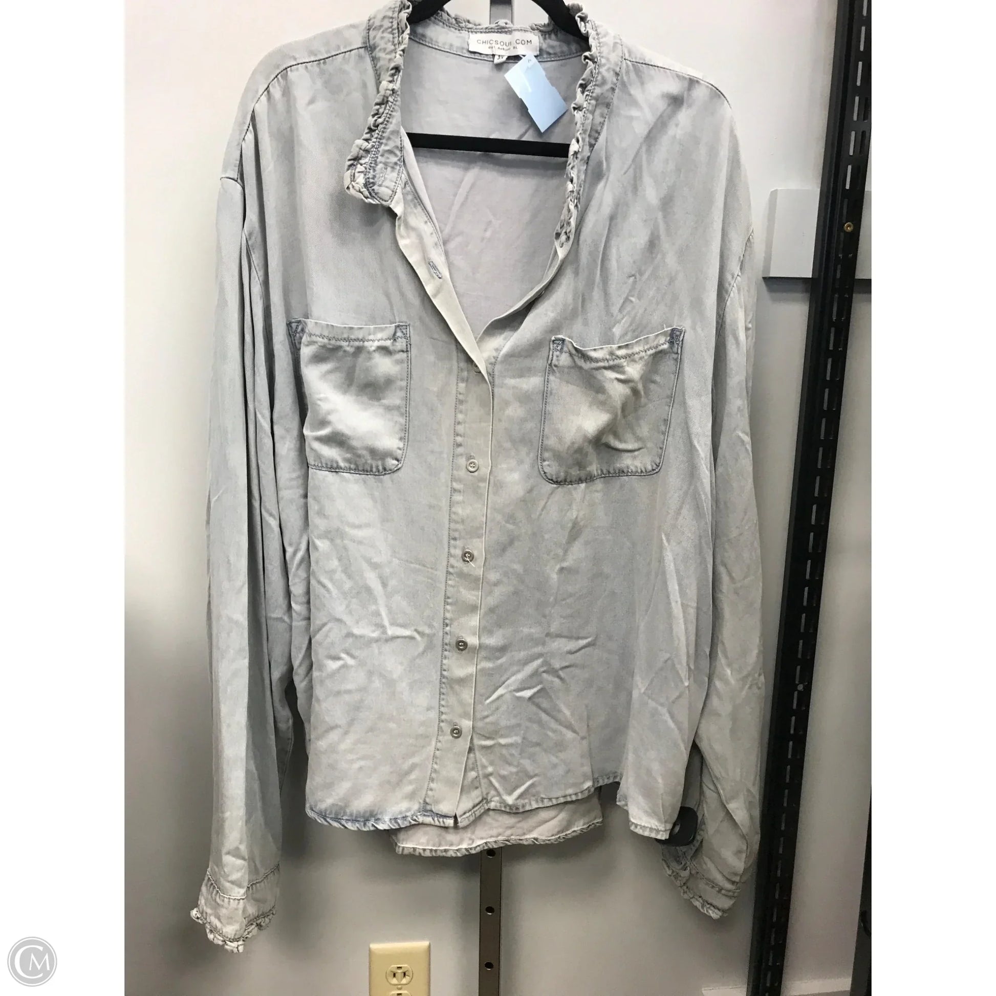 Top Long Sleeve By Chicsoul In Blue Denim, Size: 3x