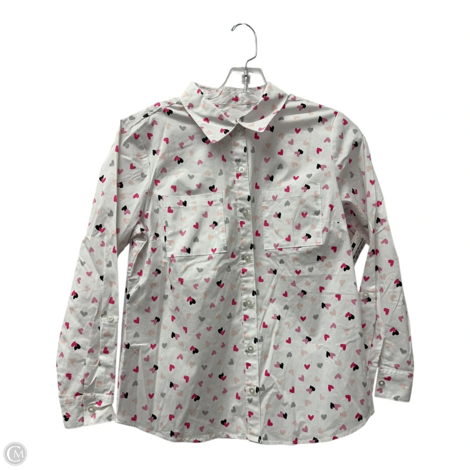 Top Long Sleeve By Christopher And Banks In Pink & White, Size: S