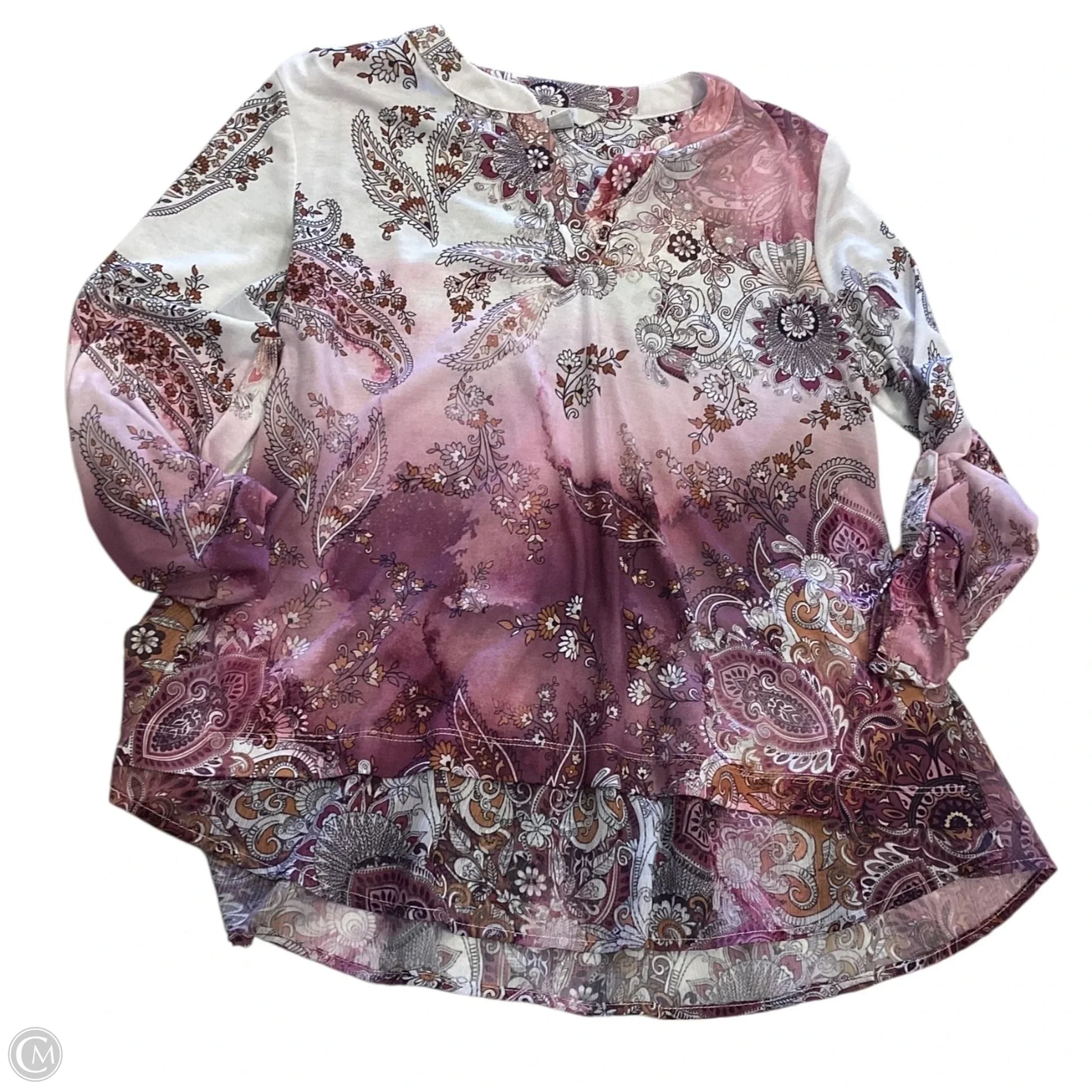 Top Long Sleeve By Croft And Barrow In Pink & White, Size: S