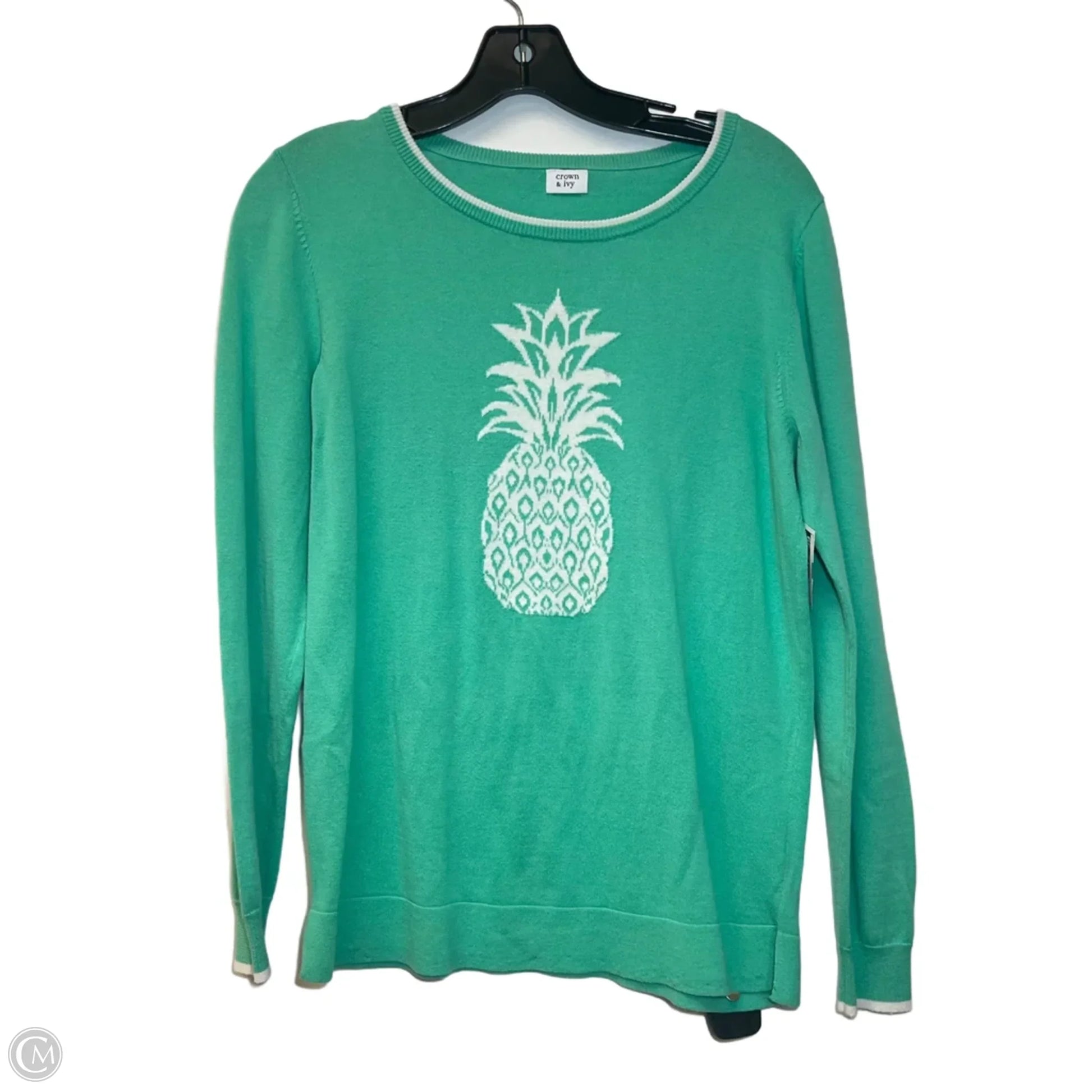 Top Long Sleeve By Crown And Ivy In Green & White, Size: S